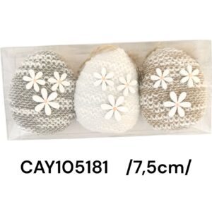 Ouă Decorative Agățătoare Tricotate cu Flori, Set de 3