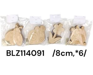 • Set de 6 Figurine Decorative din Lemn Plat, Naturale