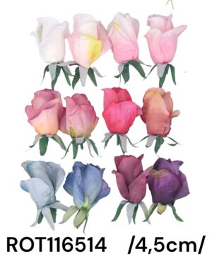 Set de capete de flori artificiale ce imită trandafirii, disponibili întro varietate de culori pastelate, de la alb și roz pal la nuanțe vibrante de roșu și violet