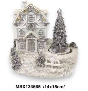 Decorațiune de Crăciun cu Casă și Brad în Zăpadă