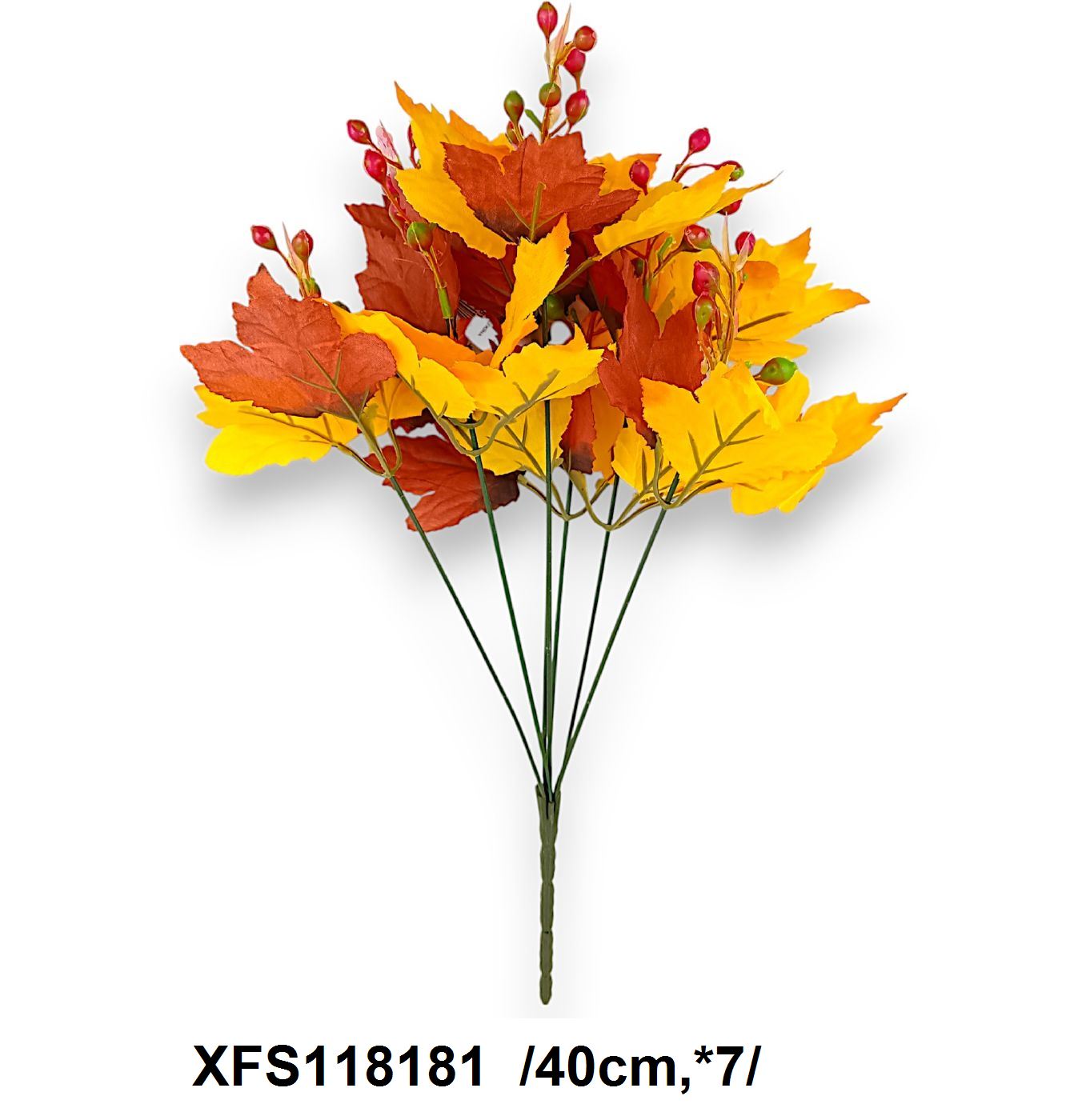 Descoperiți natura toamnei în casa dumneavoastră cu acest buchet artificial vibrant, ce capturează nuanțele bogate ale sezonului. Buchetul include frunze și flori la fir în nuanțe de oranj, aducând o notă caldă oricărui spațiu.