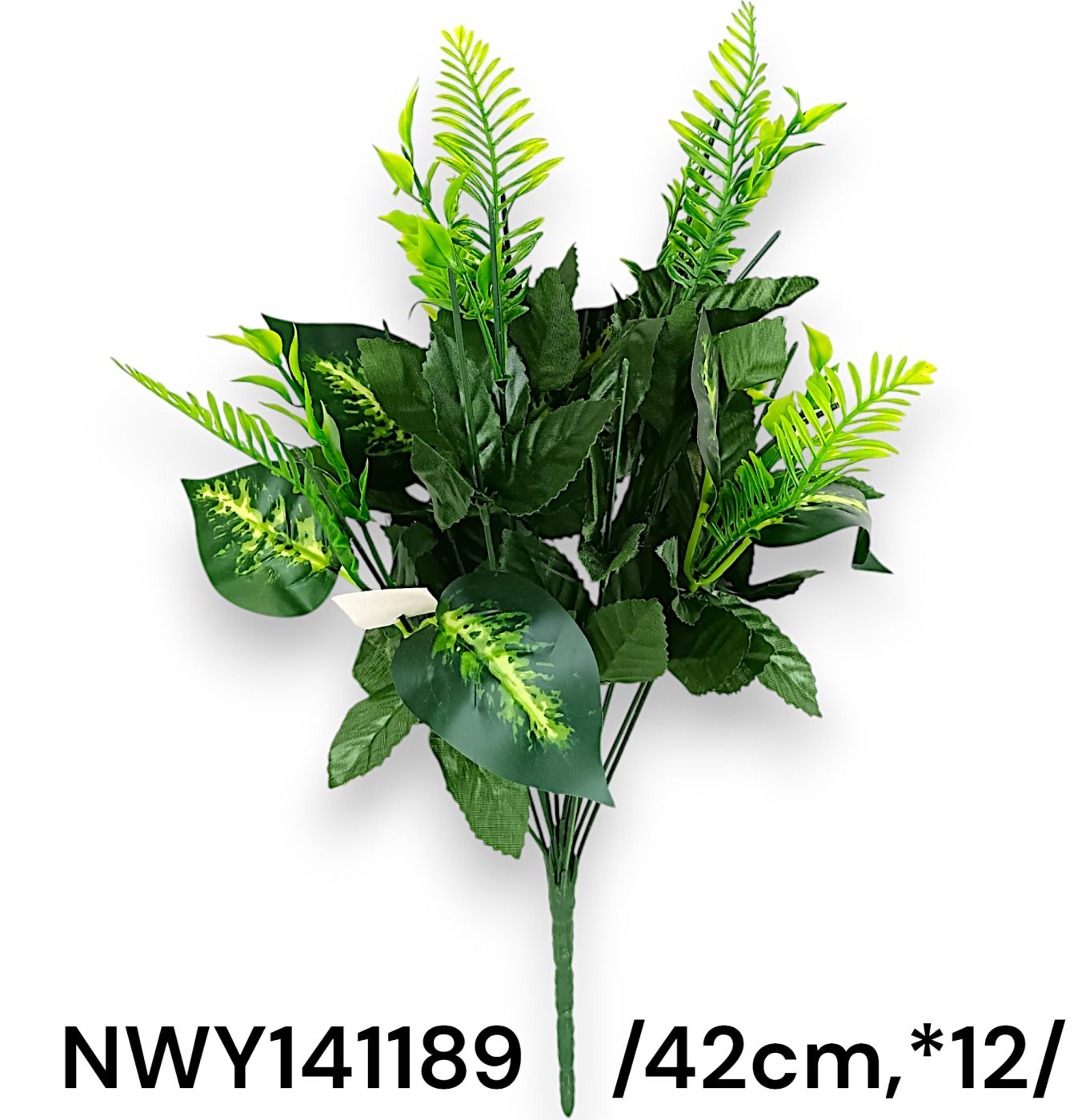 Acest buchet de flori artificiale, în nuanțe vii de verde, este ideal pentru a aduce o pată de culoare și prospețime în orice spațiu. Compoziția diversificată include frunze și ferigi, adăugând textură și volum aranjamentului. Perfect pentru decoruri interioare, evenimente sau ca element decorativ în vitrine.
