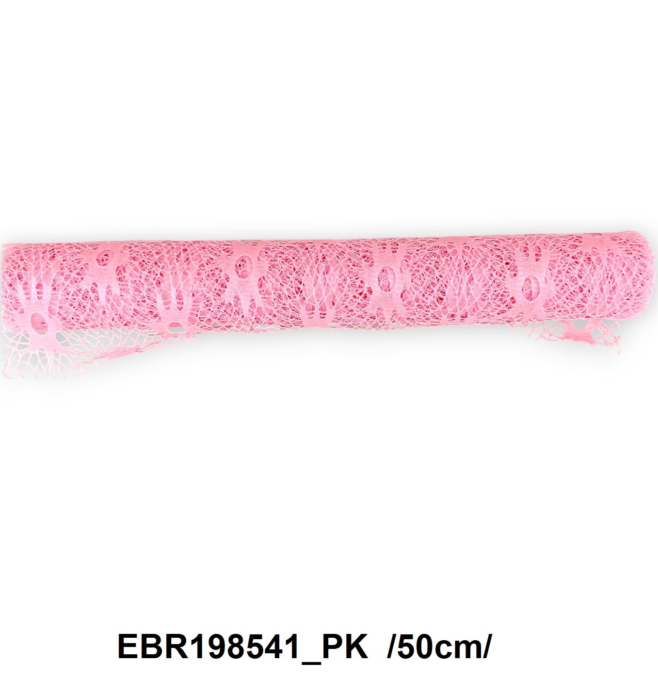 Bandă decorativă din dantelă, ideală pentru aranjamente florale și decorațiuni creative. Culoare vibrantă roz, oferind o textură delicată perfectă pentru accente speciale în creațiile dumneavoastră.