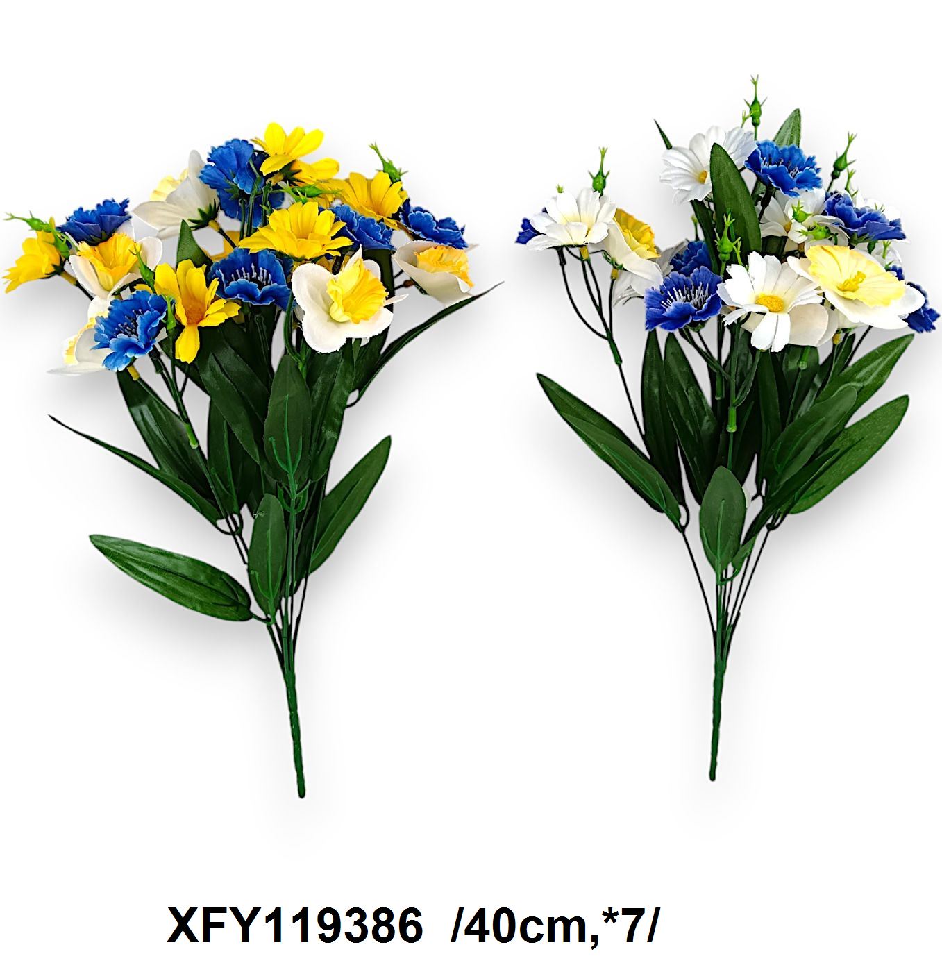 Buchetul vibrant este un amalgam de frumusețea primăverii, alcătuind o combinație armonioasă de narcise cu capete mici, margarete și albastrele. Acest aranjament floral adaugă o pată de culoare și prospețime oricărui spațiu, fiind ideal pentru decoruri interioare sau evenimente speciale. Culorile asortate ale florilor sunt plăcute vizual și atrag atenția în mod natural.