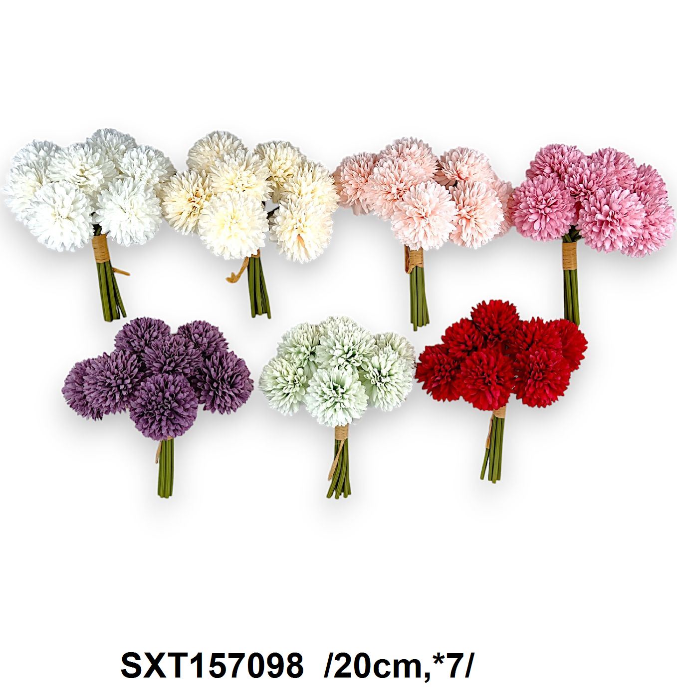 Bucurațivă de frumusețea durabilă a acestui buchet de flori artificiale, perfect pentru orice aranjament floral interior. Colectia include diverse culori vibrante precum alb, crem, roz pal, roz puternic, visiniu, lila și albverzui, toate menținânduși aspectul proaspăt tot anul.