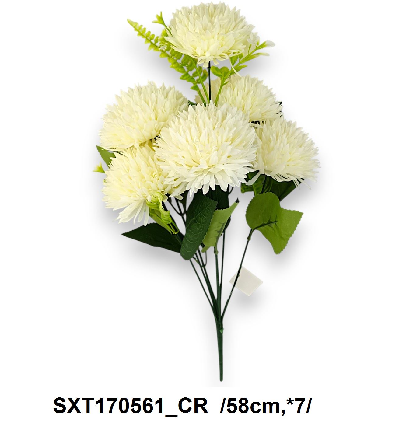Descoperiți eleganța și frumusețea acestui buchet de flori artificiale, perfect pentru a aduce un strop de rafinament în orice decor. Cu o înălțime de 58 cm, acest buchet include flori crem voluminoase, însoțite de frunze verzi detaliate, imitând aspectul natural al florilor. Ideal pentru aranjamente interioare sau evenimente speciale, fără a necesita îngrijire.