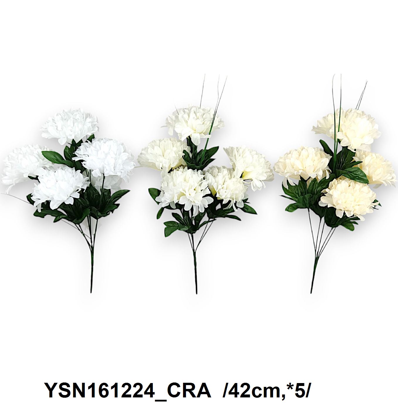 Exquisite și versatile, aceste buchete de crizanteme artificiale în nuanțe de crem și alb aduc un strop de eleganță oricărui spațiu. Fiecare buchet este format din crizanteme pline, accentuate de frunze verzi, ideale pentru decorul de interior sau evenimente festive. Dimensiune: 42cm.
