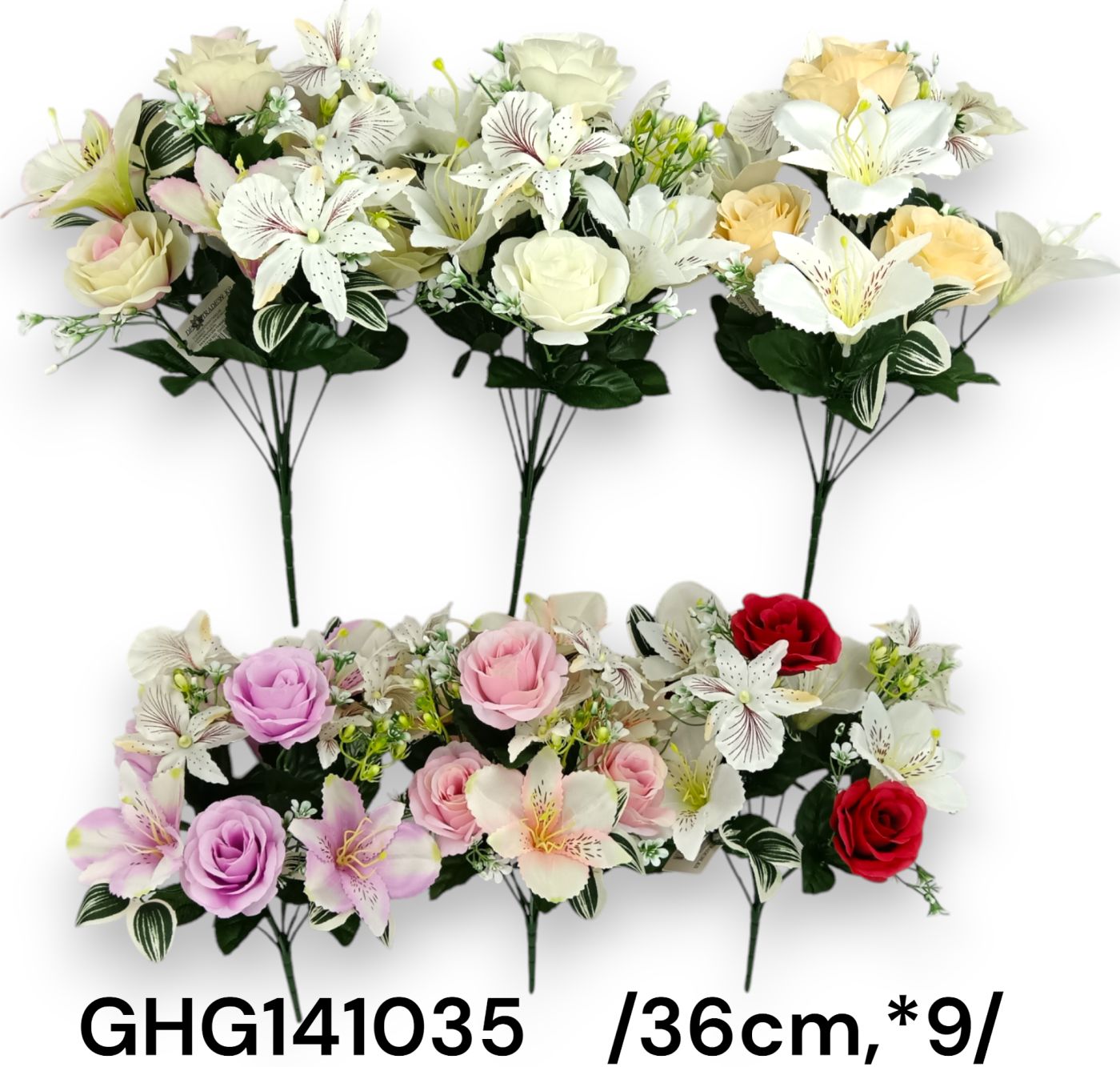 Explorează frumusețea delicată a acestui buchet exotic, compus din alstroemeria, trandafiri și flori asemănătoare orhideelor. Fiecare buchet strălucește cu o varietate de culori vibrante, oferind un spectacol vizual impresionant perfect pentru orice aranjament floral sau cadou special.