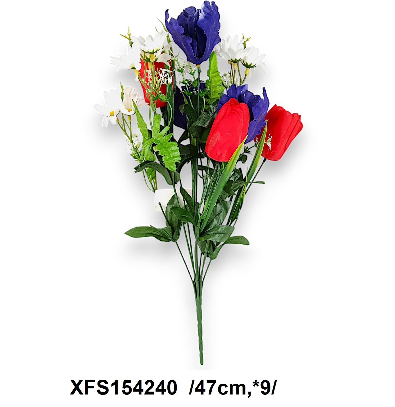 Adu farmecul primăverii în casa ta cu acest frumos buchet de flori artificiale. Combinând nuante de alb, roșu și albastru, acest aranjament floral vibrant este perfect pentru a adăuga o pată de culoare oricărui spațiu.