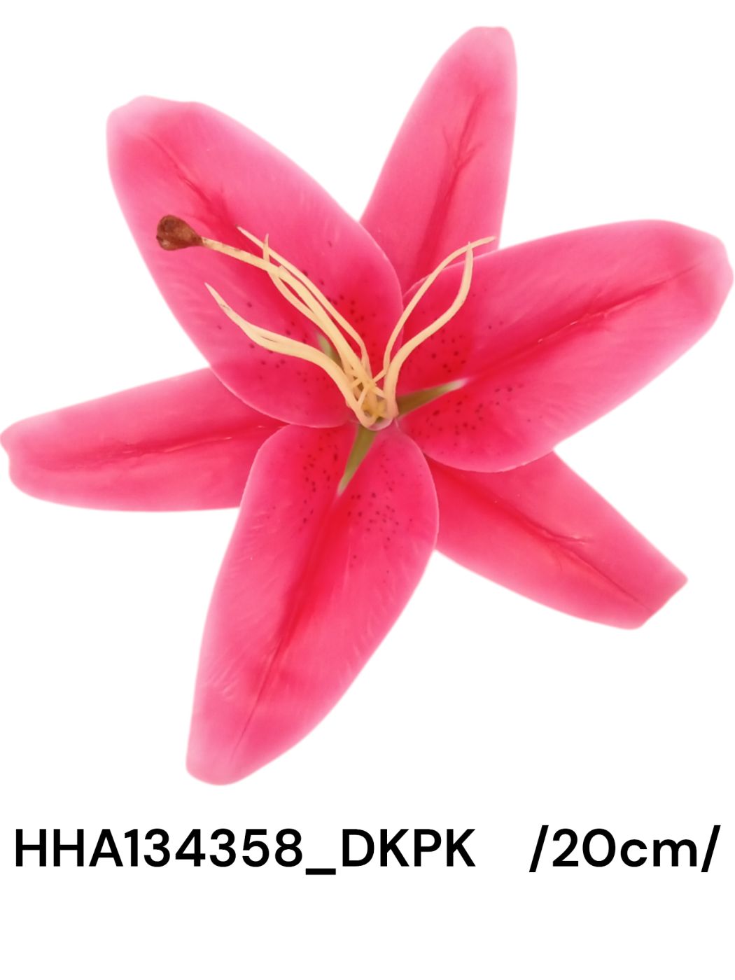 Adaugă un strop de eleganță oricărui decor cu acest cap de floare artificială în formă de Crin Imperial. Realizat cu măiestrie pentru a imita perfect frumusețea naturală, acesta vine întro nuanță încântătoare de Dark Pink și este ideal pentru compoziții florale sau ornamente de interior. Dimensiune: 20 cm.