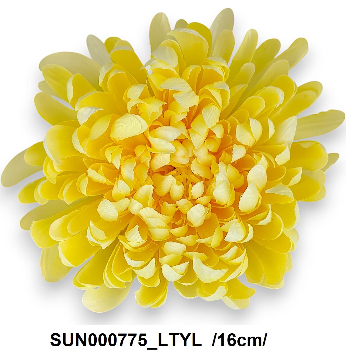 Cap de floare artificială tip Crizantemă, ideală pentru aranjamente florale diverse. Realizată cu un detaliu amănunțit, aceasta adaugă o notă vibrantă de galben deschis în orice decor.