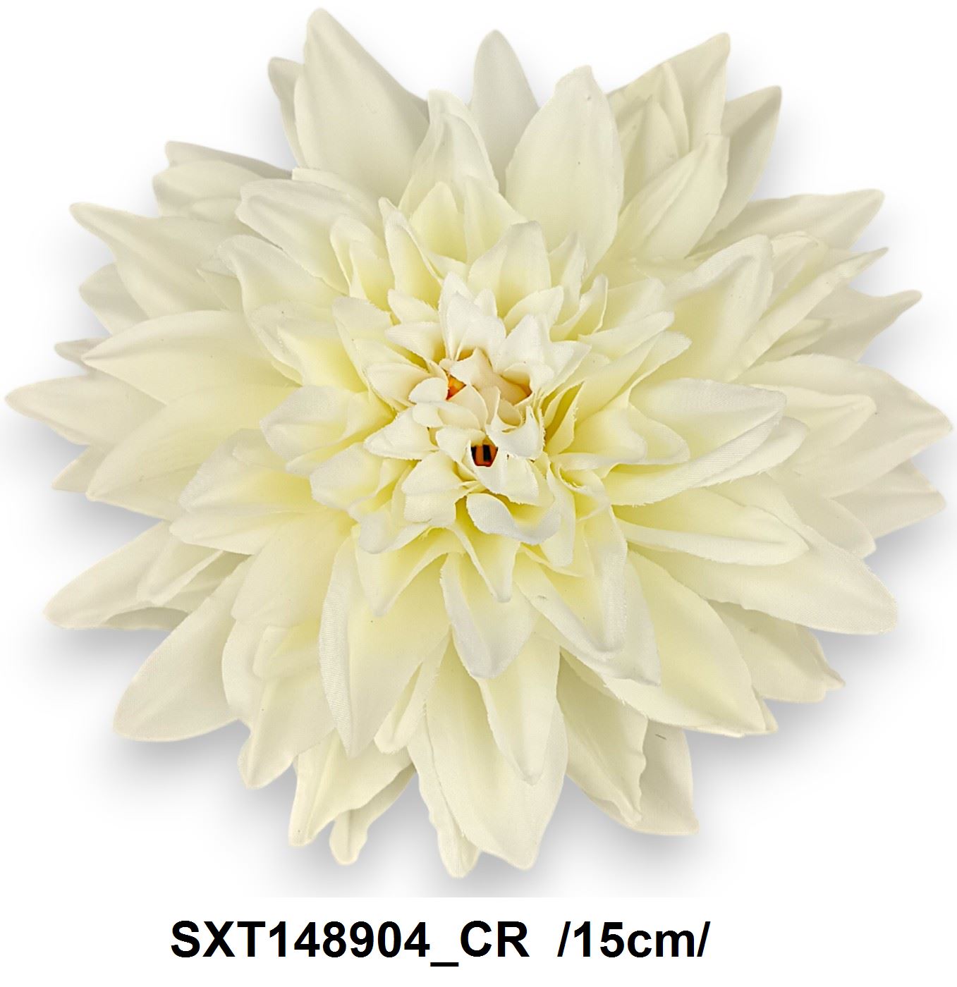 Cap de floare artificială model dalia, realizată din materiale de înaltă calitate, culoare crem, ideală pentru aranjamente florale interioare sau evenimente. Dimensiune aproximativă: 15cm.