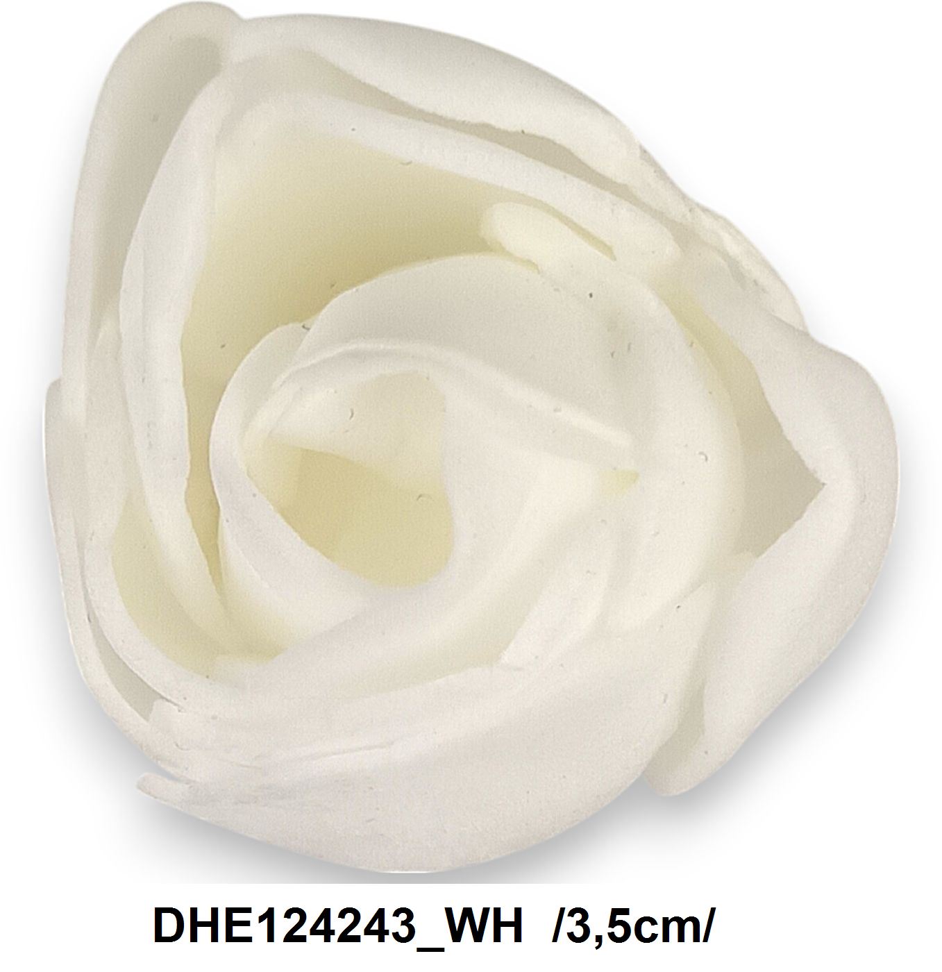 Această roză albă artificială este perfectă pentru a adăuga o atingere de eleganță și rafinament oricărui aranjament floral. Datorită dimensiunii sale compacte de 3,5 cm și a culorii versatile, se integrează armonios în buchete, coronițe sau alte decorațiuni florale.