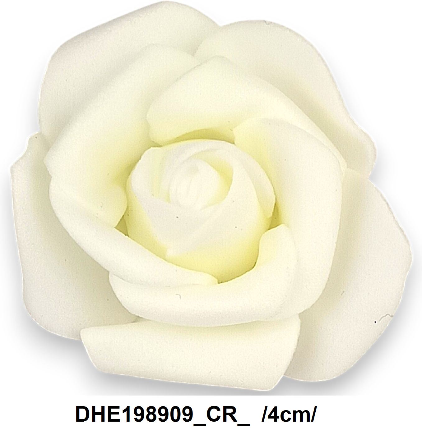 Cap de floare artificială model trandafir, perfect pentru decoruri sofisticate și aranjamente florale permanente. Culoare: crem. Dimensiune: 4 cm.