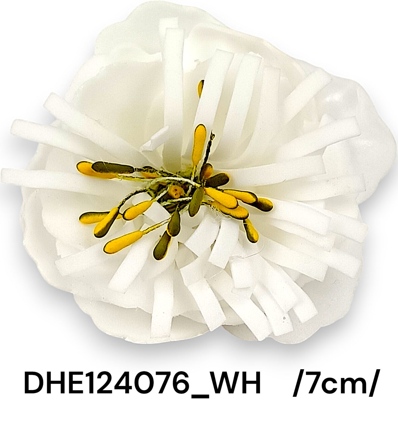 Realizată din polyfoam, acest cap de floare Zinnea aduce lux și eleganță oricărui aranjament floral. Cu un diametru de 7 cm și detalii fine din stamine de plastic, este ideală pentru decoruri sofisticate. Culoarea albă păstrează un aspect curat și versatil, adaptânduse ușor la diverse tematici decorative.