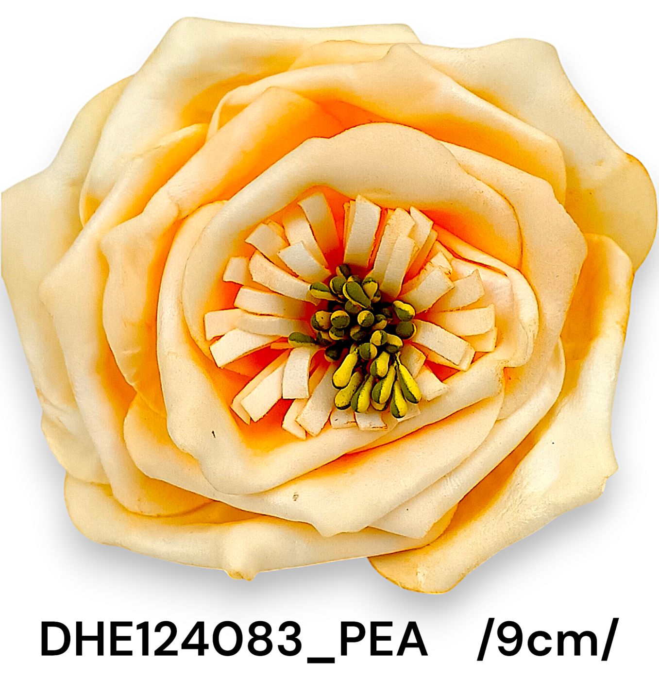 Descoperă frumusețea durabilă cu acest cap de trandafir artificial realizat din polyfoam, având un design detaliat și stamine din plastic. Culoarea piersică aduce o notă caldă și sofisticată oricărei decorații. Ideal pentru aranjamente florale permanente.