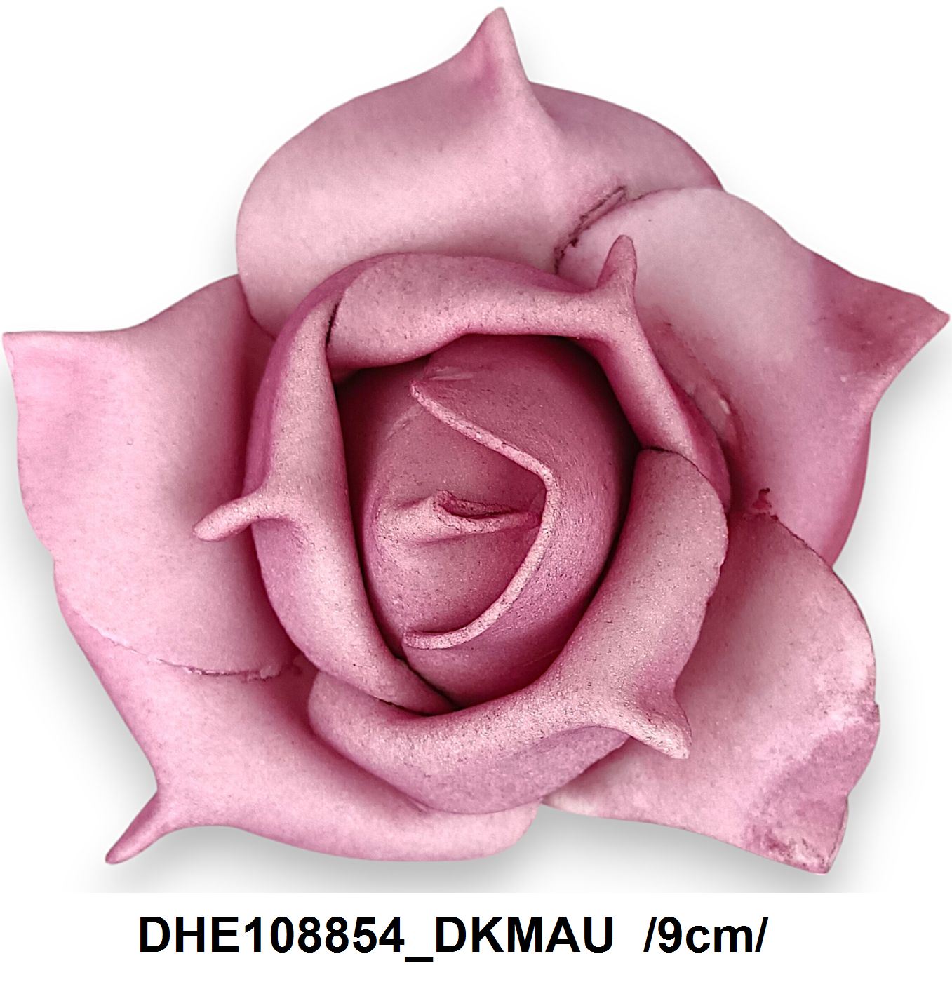 Aduceți eleganță și un strop de culoare misterioasă oricărui aranjament floral cu acest cap de trandafir fabricat din polifoam, cu un diametru de 9 cm, întro nuanță captivantă de mauve închis.