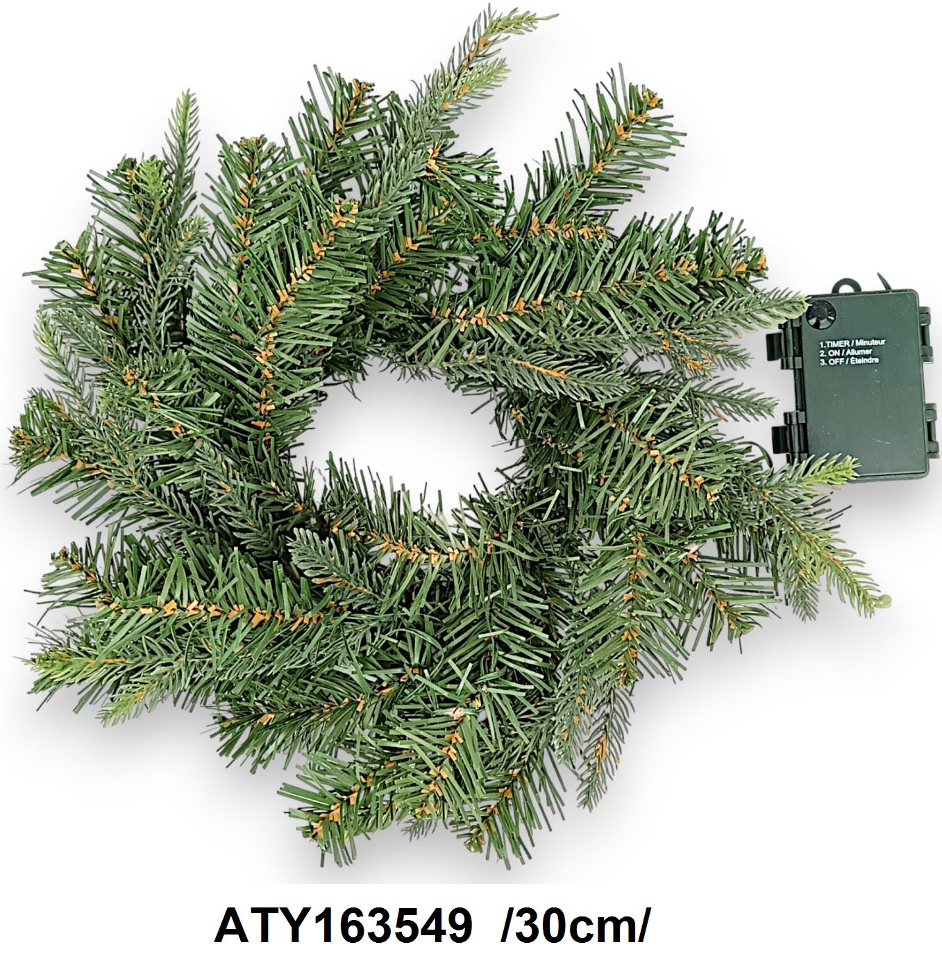 Adaugă un strop de magie sărbătorilor tale cu această coroniță decorativă, prevăzută cu lumini LED. Realizată din materiale de înaltă calitate, aceasta imită perfect frunzele de brad, aducând farmecul naturii în decorul tău. Ideală pentru Crăciun, coronița are un diametru de 30 cm, fiind perfectă pentru uși, ferestre sau perete. Lumineazăți casa cu această piesă elegantă, care funcționează cu baterii și include un timer, pentru comoditatea ta.