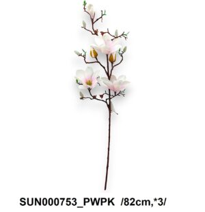 Această creangă decorativă de magnolie artificială cu trei flori aduce un touch de rafinament oricărui decor. Perfectă pentru aranjamente florale sau ca element decorativ singular, prezintă o culoare delicată roz pudrat, fiind ideală pentru a adăuga un strop de eleganță naturală fără necesitatea întreținerii.