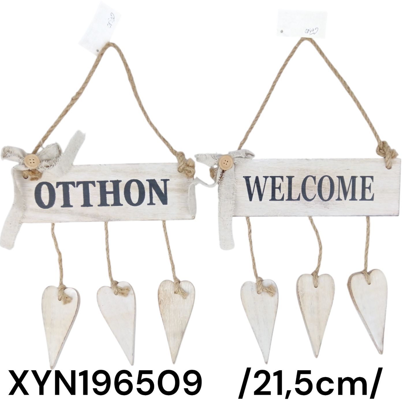 Aduceți un aer primitiv și cald oricărui spațiu cu această decorațiune de ușă ce combină cuvintele ‘Welcome’ și ‘Otthon’, accentuată de inimioare suspendate