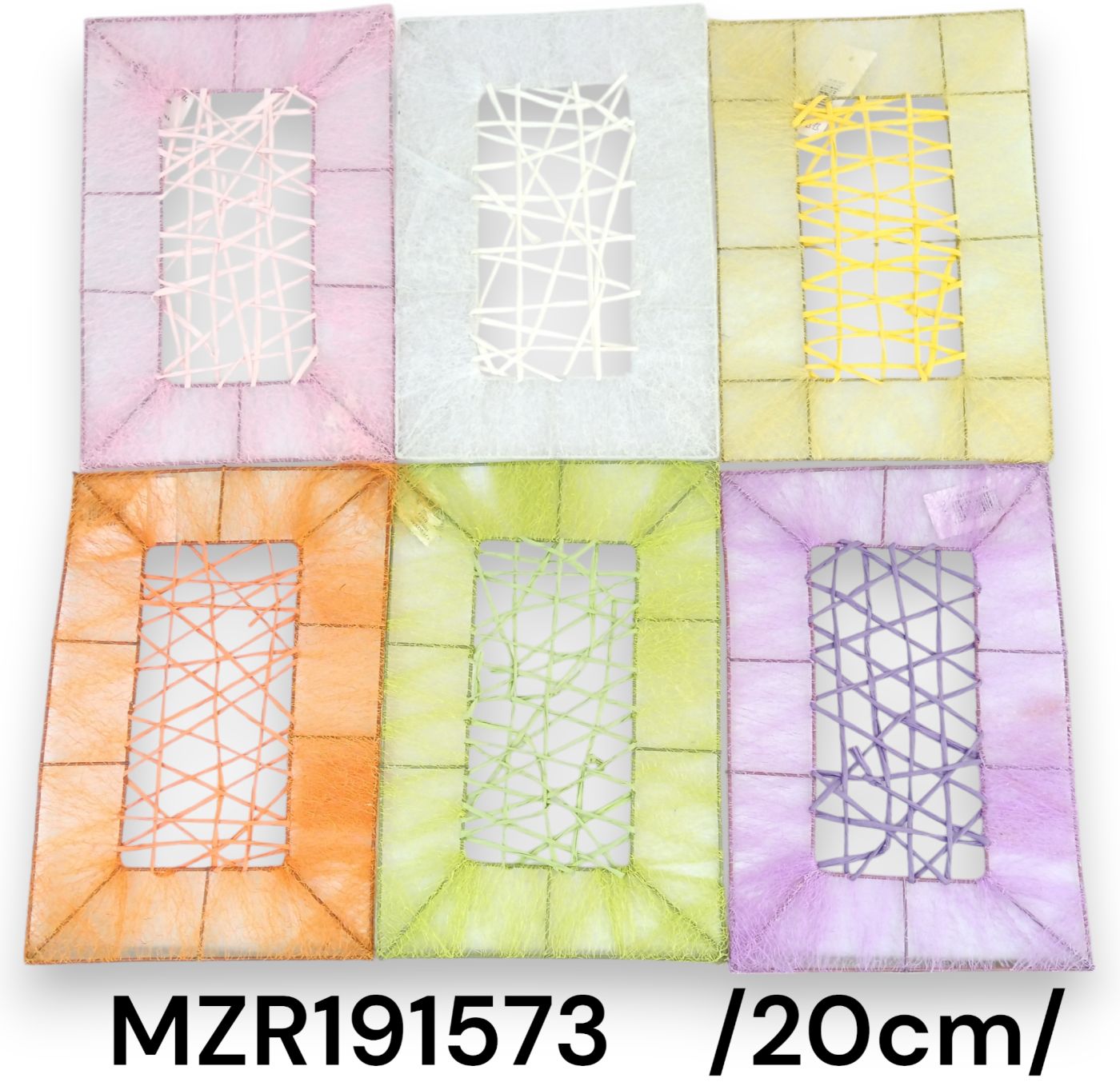 Adăugați un strop de culoare și textură oricărui spațiu cu aceste decorații de 20 cm pentru cadre, prezentând un design reticulat și fir încrucișat. Disponibile întro paletă de culori care variază de la pasteluri suave la nuanțe vibrante, aceste decorațiuni atrăgătoare sunt perfecte pentru orice aranjament floral sau decor de acasă.
