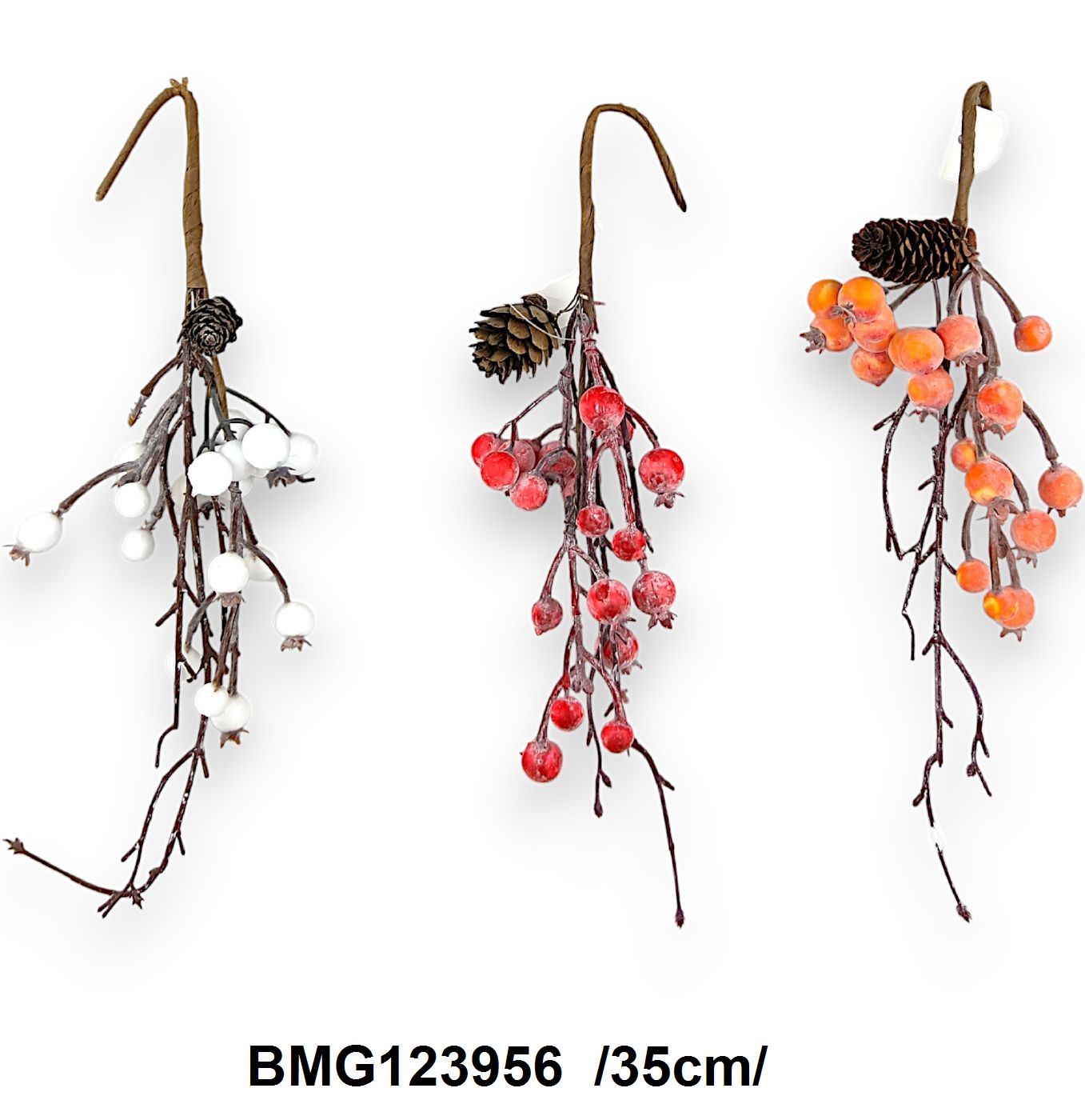 Adoptă un stil rustic în decorul tău cu aceste decorațiuni suspendabile din fructe artificiale și conuri naturale. Perfecte pentru a aduce o notă de naturalețe și căldură oricărui spațiu, fie el casnic sau pentru evenimente. Disponibile în variante cu fructe roșii și albe sau roșii și portocalii, aceste accesorii sunt ideale pentru toamnă sau Crăciun.