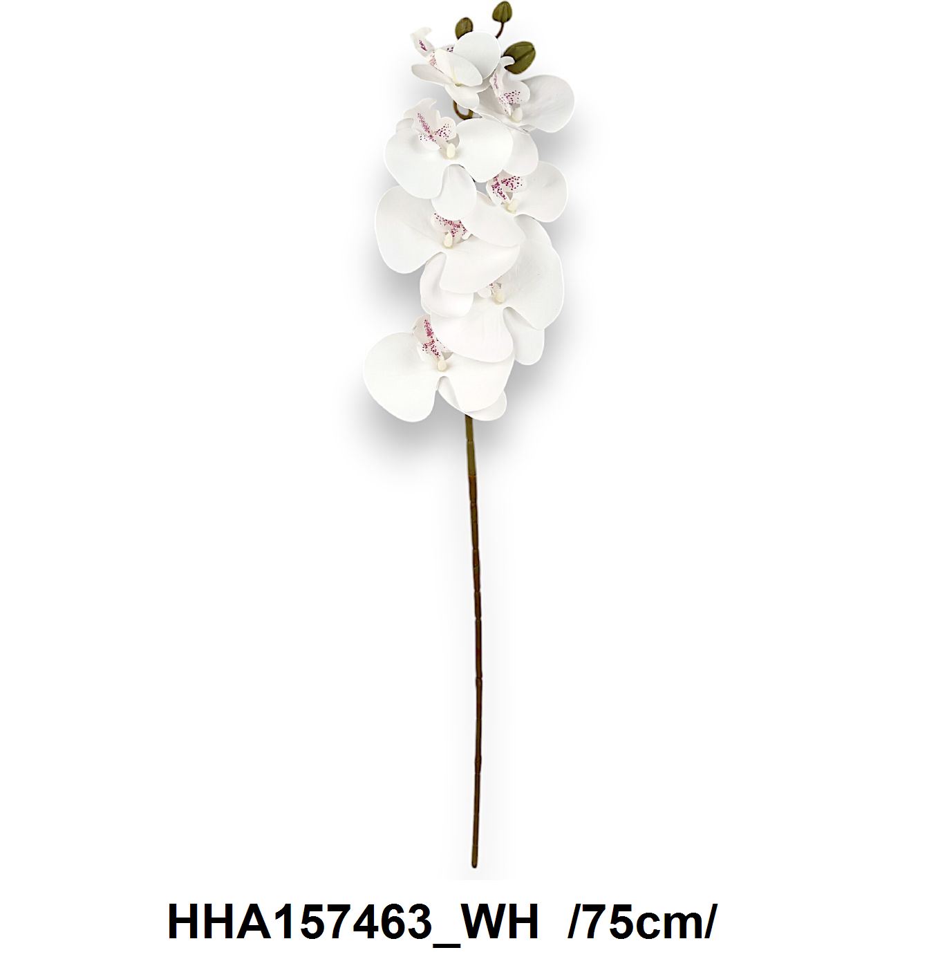 Aduceți un strop de eleganță și rafinament decorului dumneavoastră cu acest fir de orhidee artificială de culoare albă. Perfectă pentru aranjamentele florale permanente, această floare adaugă frumusețe fără necesitatea întreținerii constante. Lungimea de 75 cm o face ideală pentru vase înalte sau pentru decoruri suspendate.
