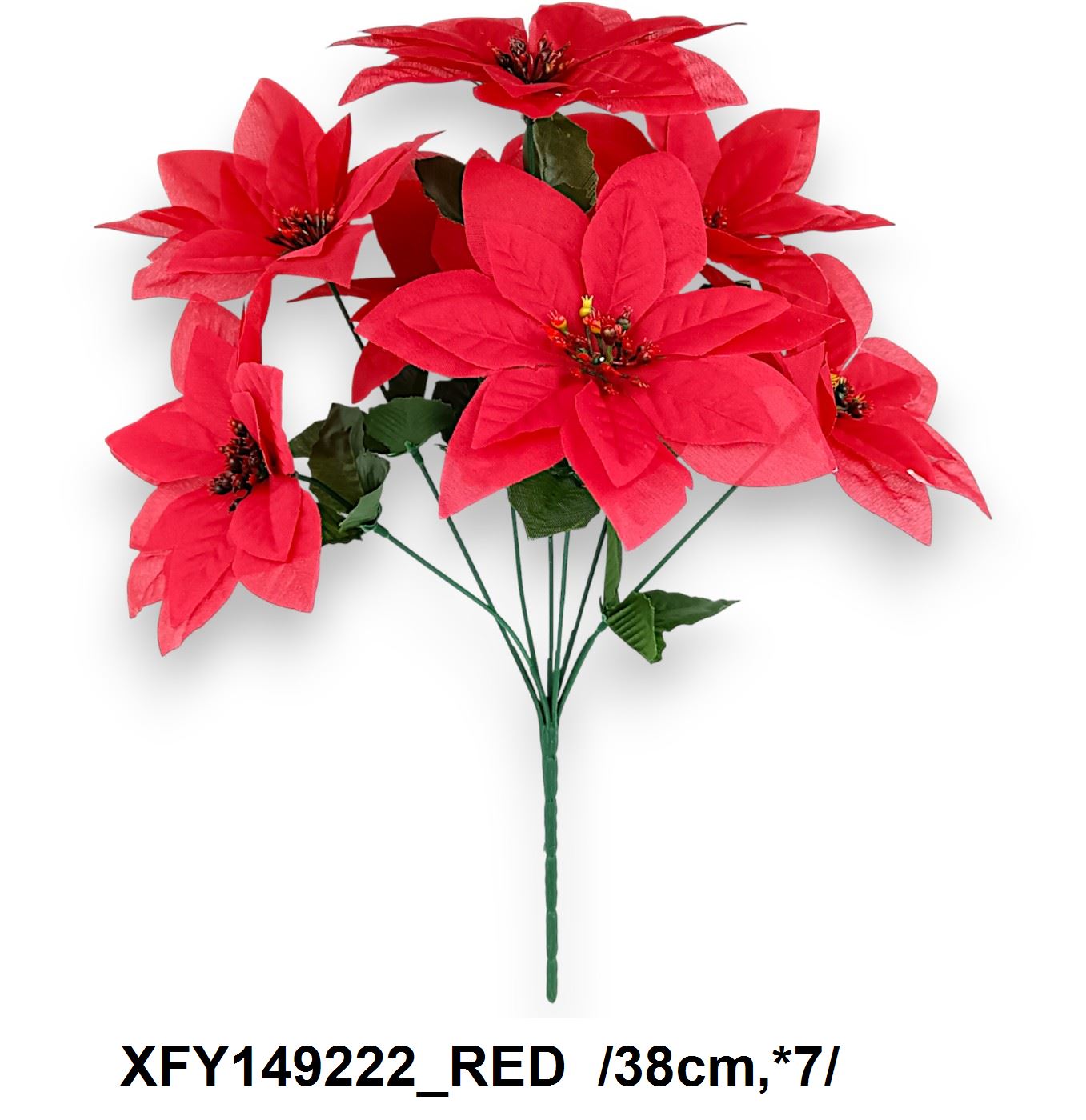 Crăciunită artificială, perfectă pentru decorarea spațiului tău festiv. Această floare impresionantă adaugă o notă vibrantă de roșu și este ideală pentru aranjamente de Crăciun. Înălțimea totală este de 38cm, oferind o prezență marcantă în orice combinație florală.
