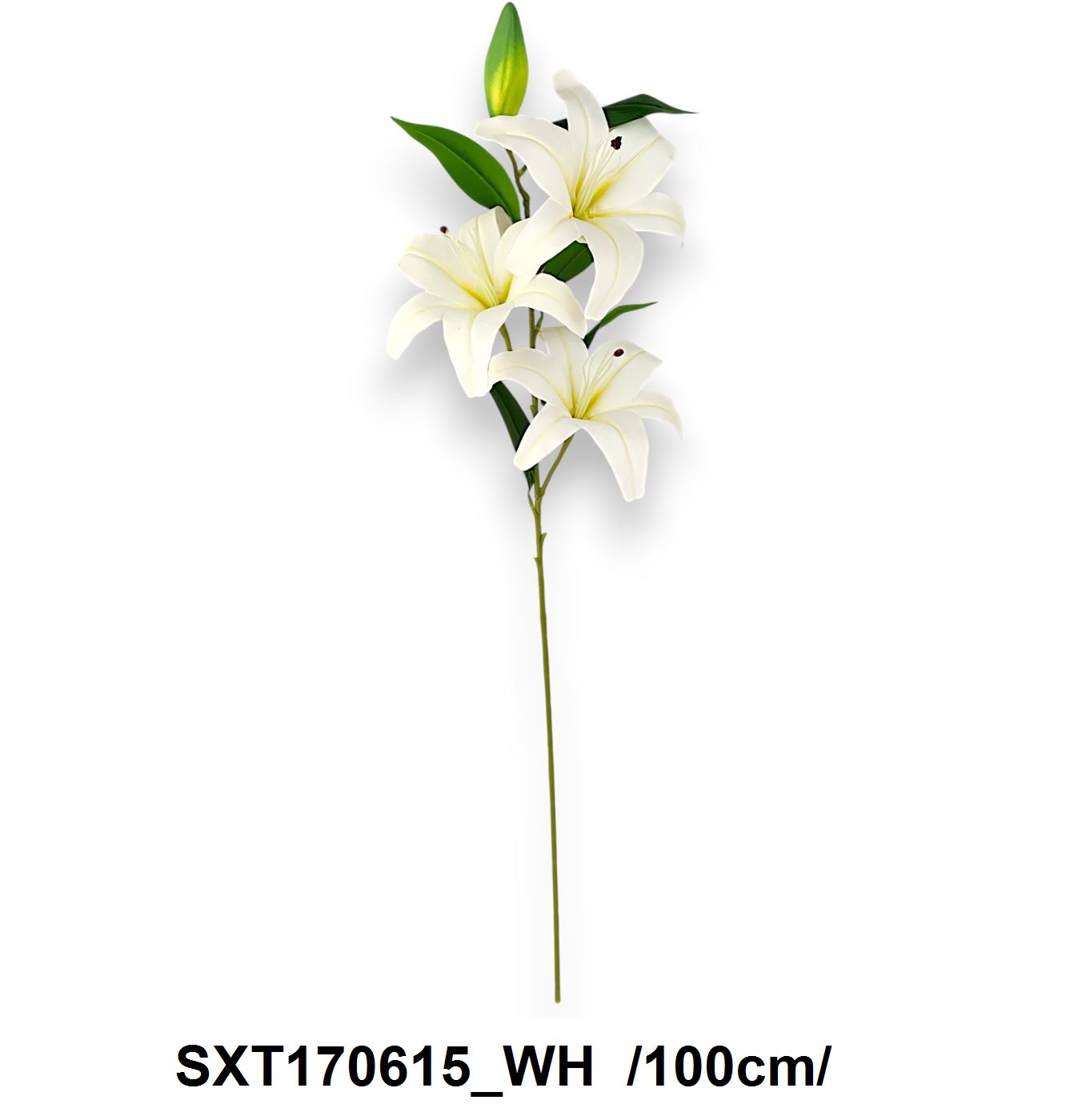 Explorați eleganța simplă a acestui crin artificial de culoare albă, perfect pentru a adăuga un strop de rafinament oricărui decor. Cu o înălțime impresionantă de 100cm, acesta este ideal pentru aranjamentele florale înalte sau ca punct focal întro vază înaltă.
