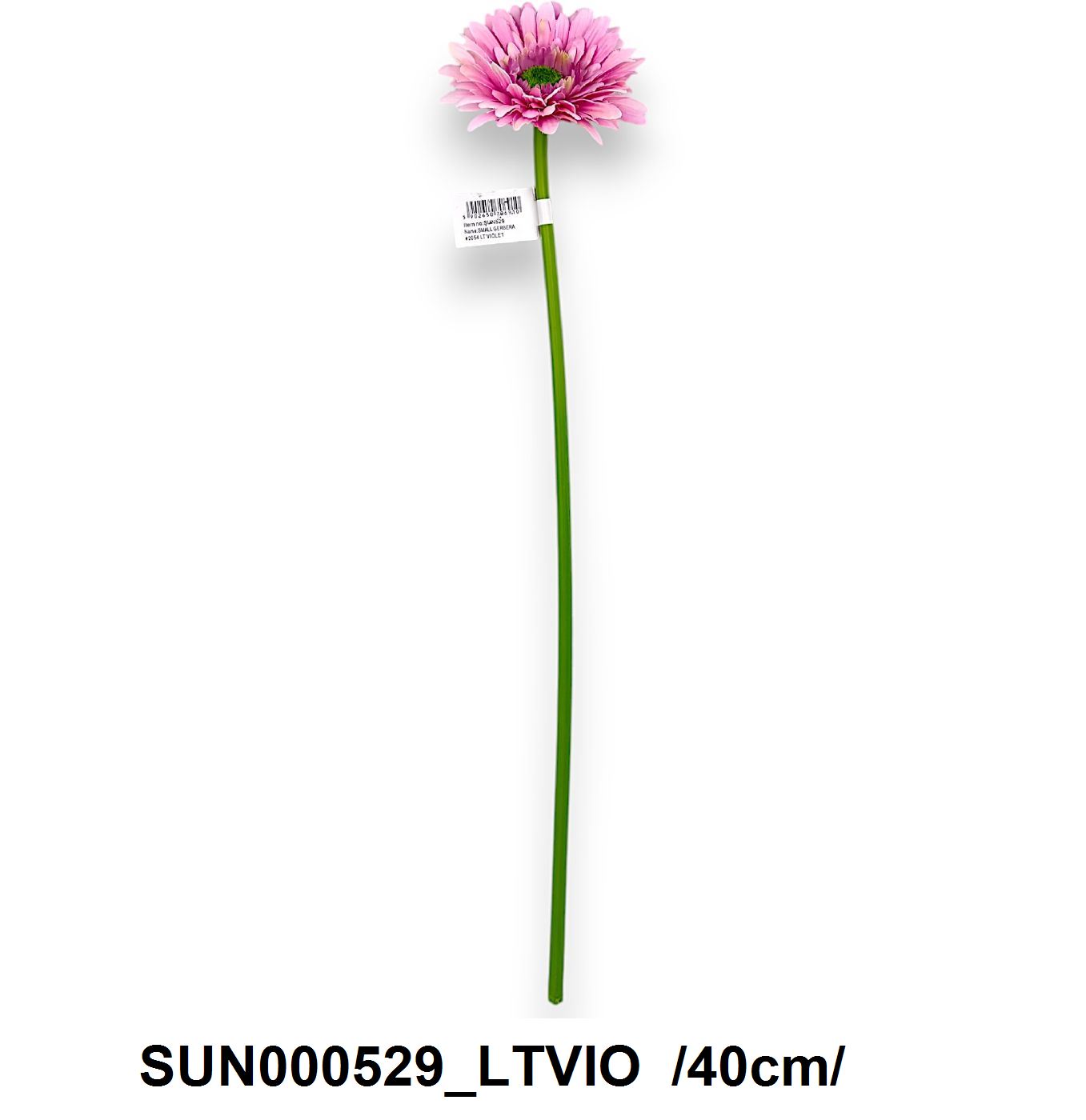Explorează farmecul durabil al acestei flori artificiale tip Gerbera, perfect reproiectată întro nuanță delicată de violet deschis