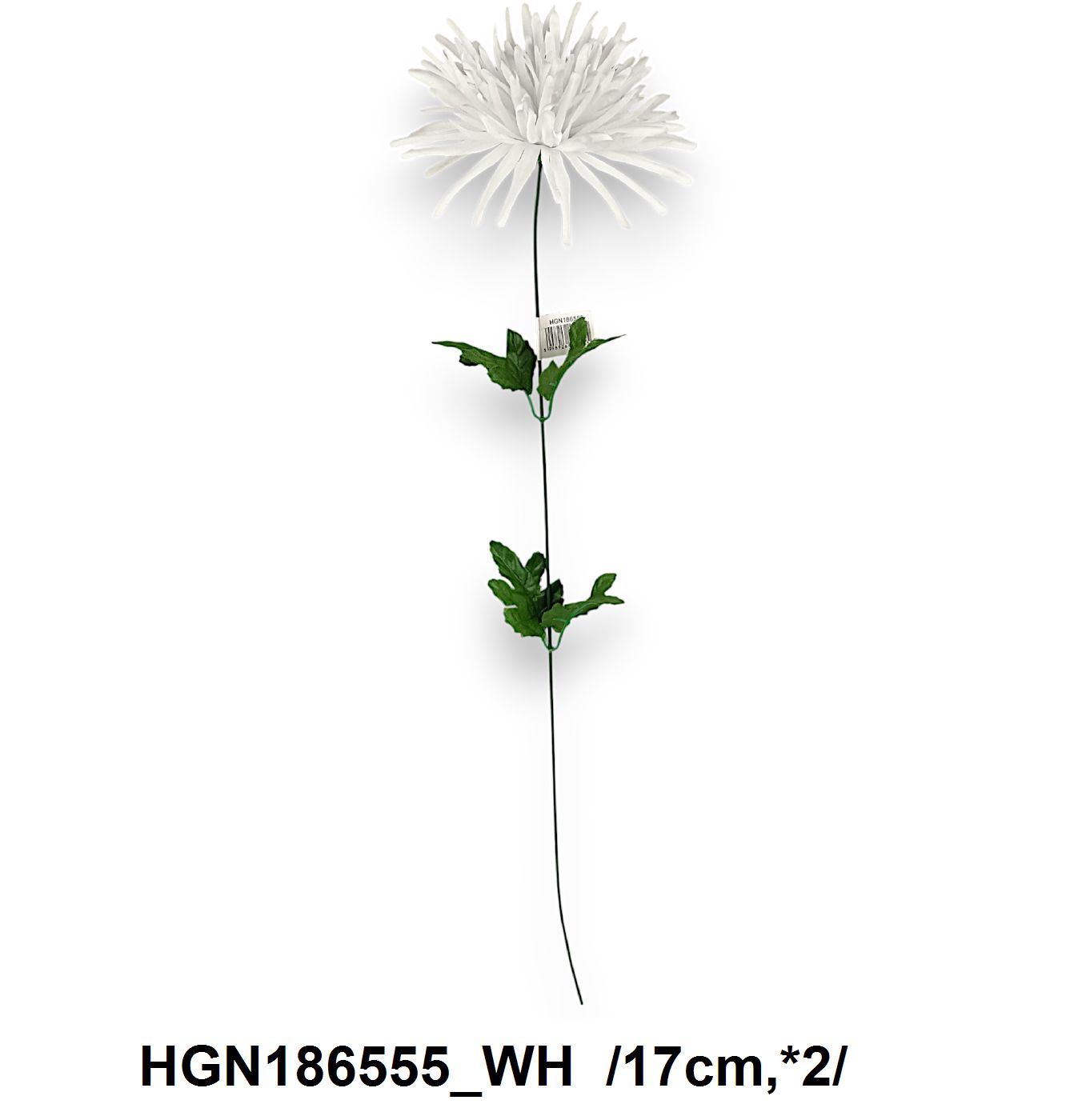 Această floare artificială în formă de crizantemă adaugă un strop de eleganță oricărui aranjament floral. Cu petale voluminoase de culoare albă și frunze verzi realistice, este perfectă pentru decoruri interioare, evenimente speciale sau pentru a completa buchetele florale.
