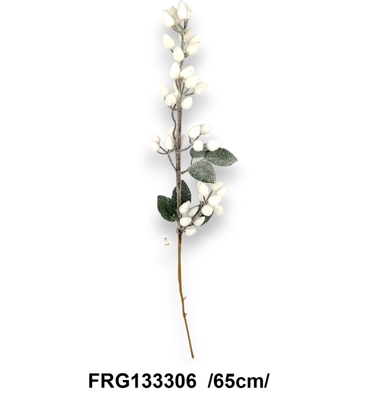 Descoperă eleganța discretă a acestui fir de floare artificială, ideală pentru a adăuga un touch de rafinament și prospețime oricărui aranjament floral. Designul include muguri albi fini, acompaniați de frunze realistice cu detalii autentice. Lungime totală: 65 cm. Culoare: alb.