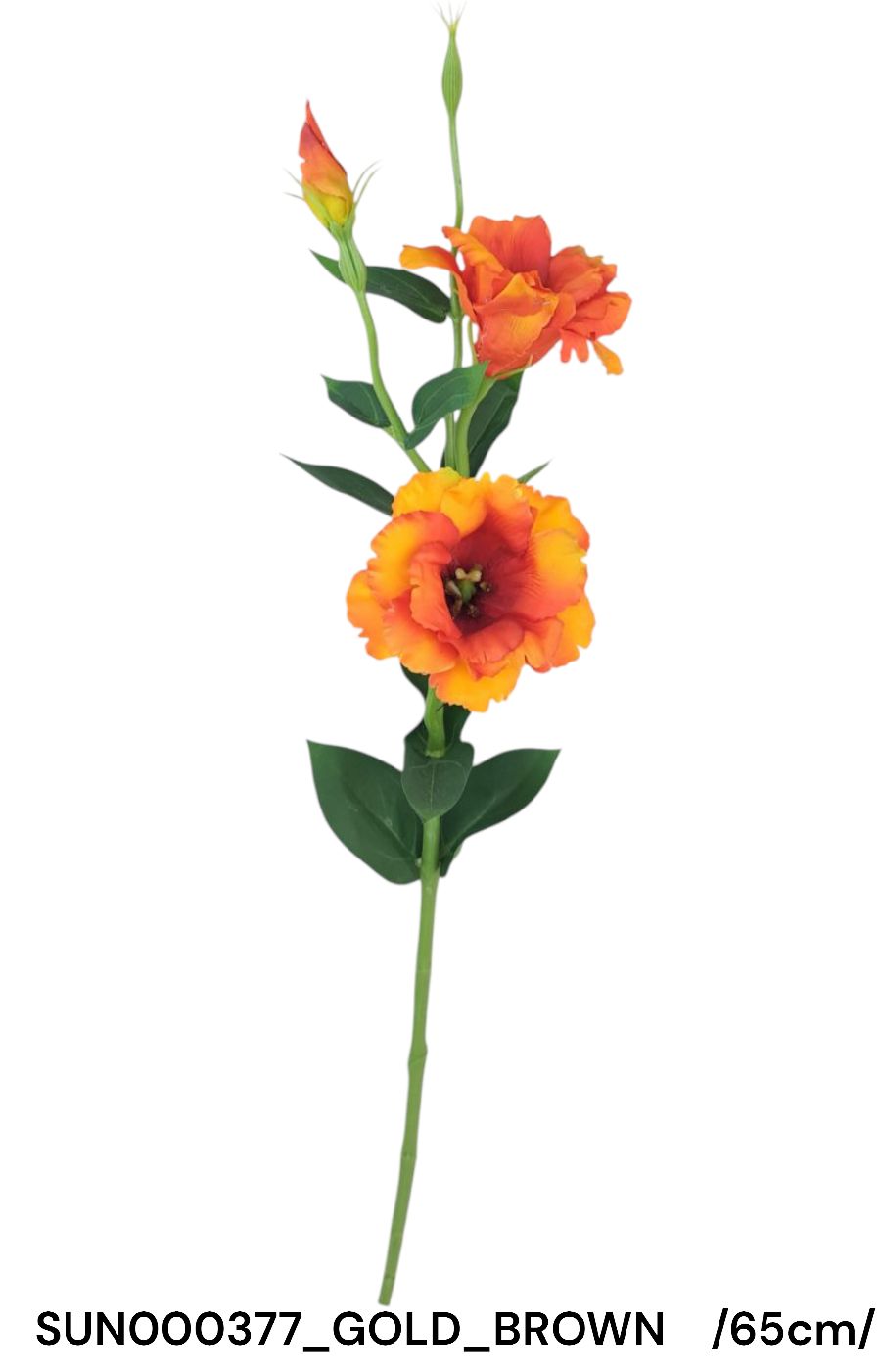 Adaugă o notă de eleganță și stil ambientului tău cu această floare artificială Lizi de 65 cm, realizată în nuanțe captivante de auriu și maro. Ideală pentru decoruri interioare sau aranjamente florale sofisticate.