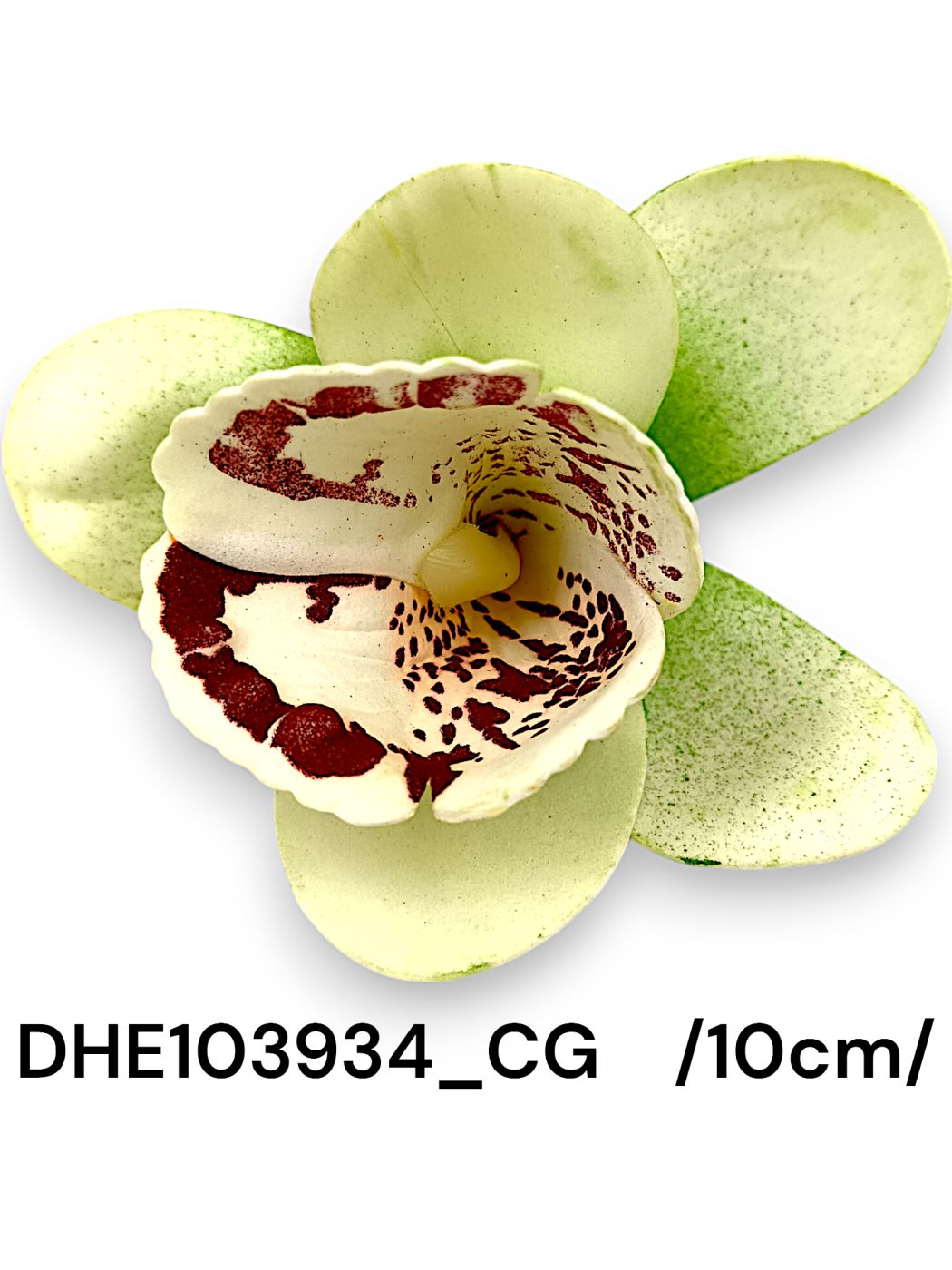 Capăt de floare artificială Cymbidium, ideal pentru decorațiuni interioare și aranjamente florale. Design realist, în culori cream și verde, perfect pentru adăugarea unui strop de eleganță oricărui spațiu. Dimensiune compactă, 10cm, ușor de integrat în diferite aranjamente și decoruri.
