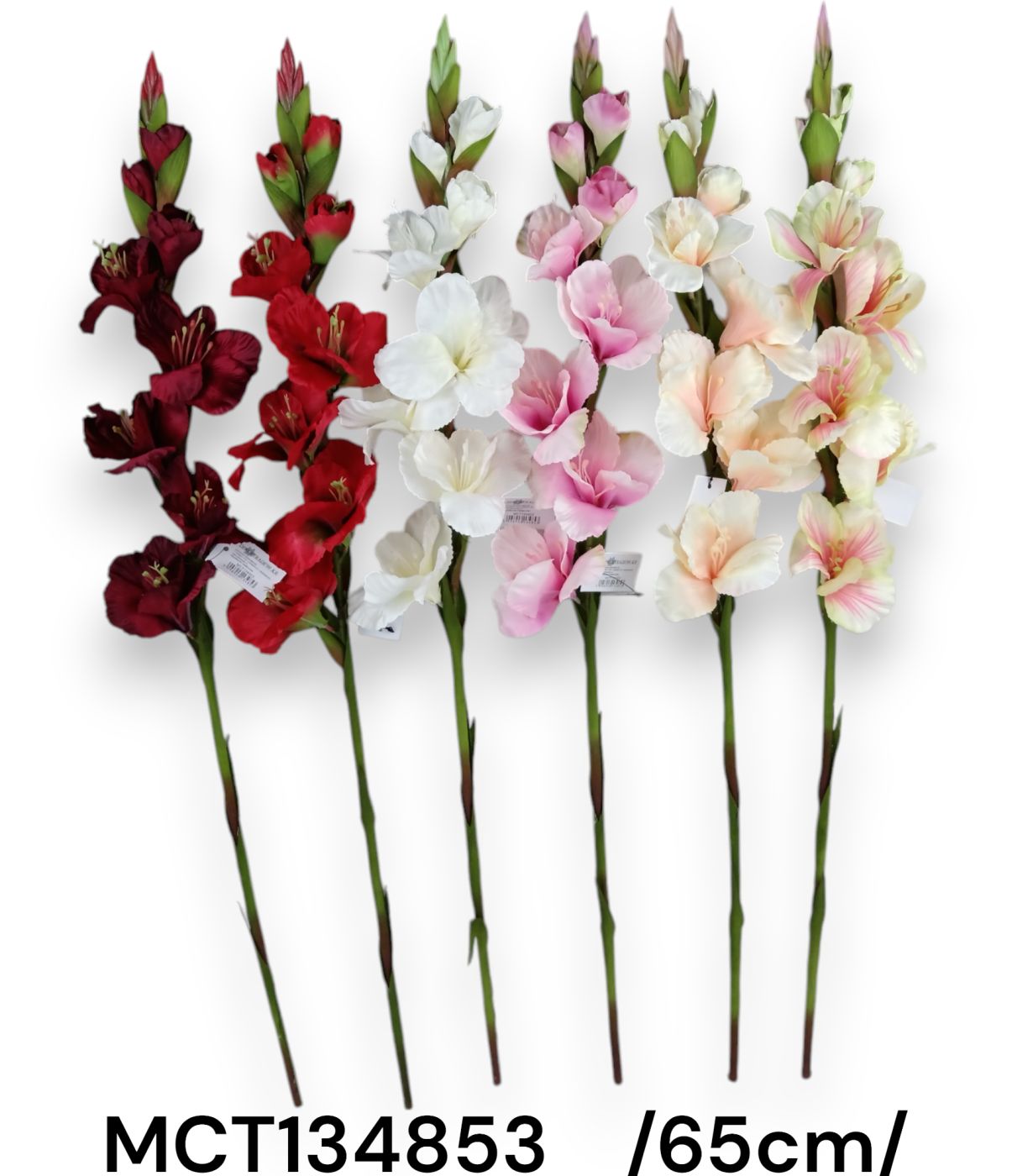 Adaugă o notă vibrantă oricărui spațiu cu aceste flori artificiale în forma de gladiole. Disponibile întrun asortiment de culori delicate, aceste flori sunt perfecte pentru orice aranjament floral. Cu tulpini lungi de 65 cm, aceste gladiole artificiale aduc eleganță și frumusețe durabilă, fără necesitatea întreținerii obișnuite a florilor naturale.