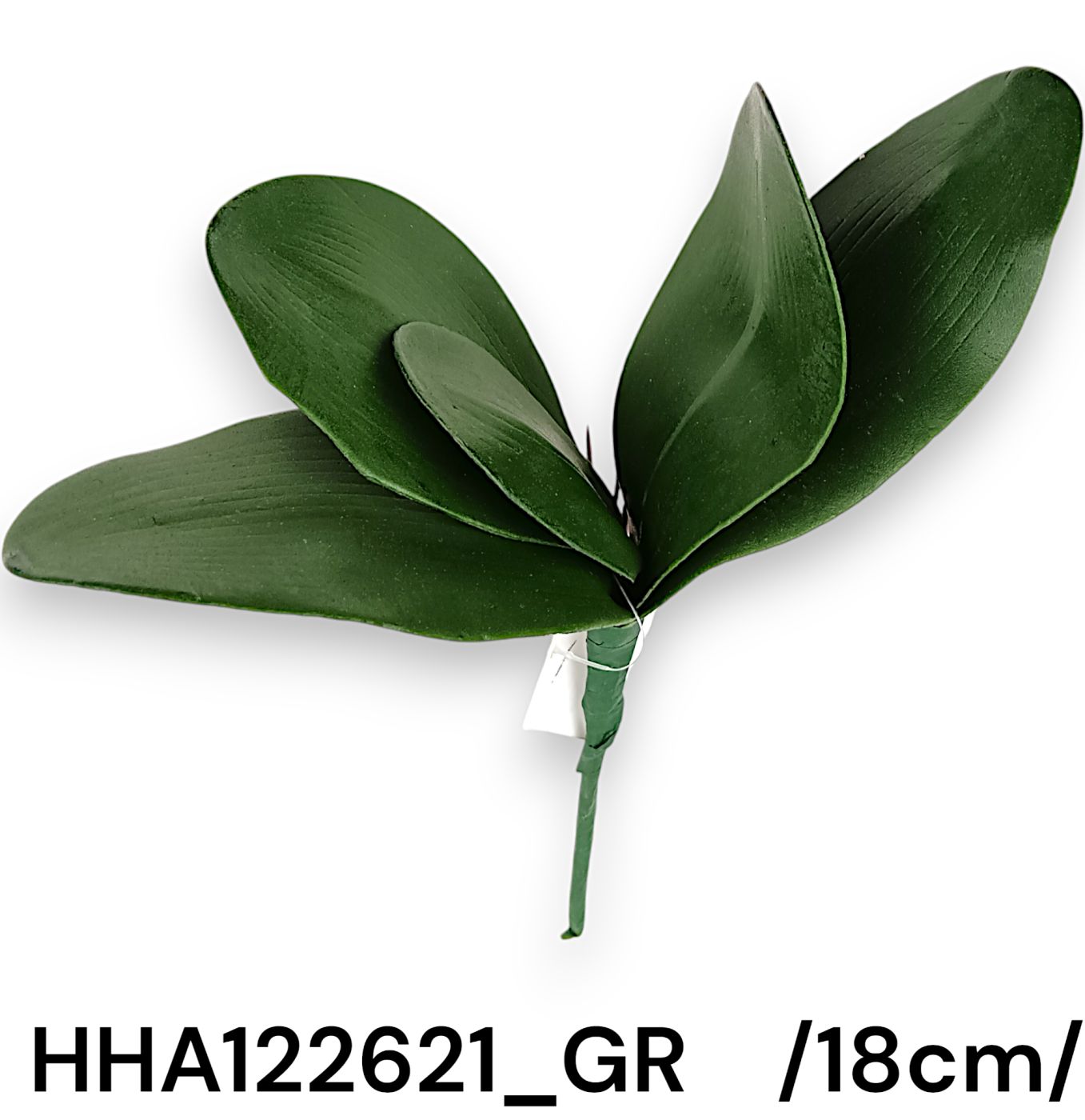 Această frunză de orhidee artificială adaugă o notă de verde proaspăt și natural oricărei compoziții florale sau decorului interior. Realizată cu atenție la detalii, măsoară 18 cm în lungime și vine cu o imitație realistă de rădăcină, perfectă pentru a imita aspectul natural al orhideelor. Culoarea verde intens îi conferă un aspect vibrant și autentic.