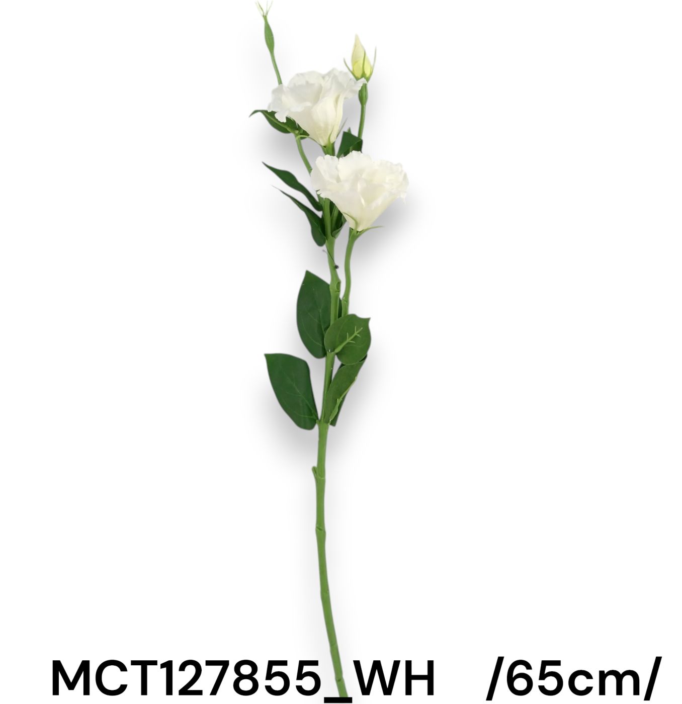 Eleganță și rafinament întrun singur element decorativ. Acest lisianthus fibros de 65 cm, în nuanță pură de alb, este perfect pentru a crea aranjamente florale deosebite sau a adăuga un strop de naturalețe oriunde în casa ta. Inclusiv două capete de flori pline de farmec și un boboc promițător, împreună cu frunze verzi, acesta exprimă delicatețe și puritate.