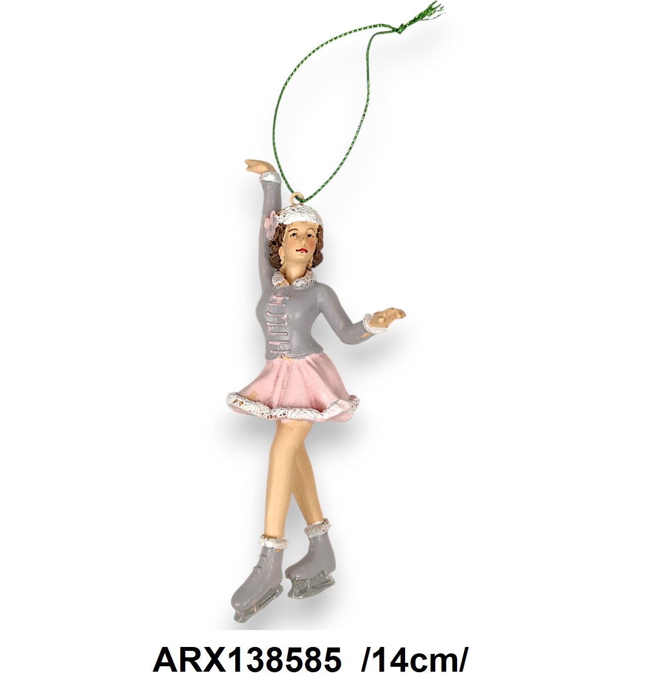 Adăugați o notă de eleganță sărbătorilor dumneavoastră cu acest ornament delicat reprezentând o patinatoare pe gheață, finisată în culori de gri și roz