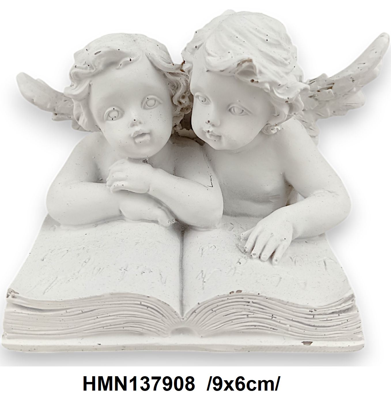 Descoperă farmecul și delicatețea acestui ornament cu două figurine de îngeri citind. Perfect pentru a aduce un strop de inocență și pace în orice colțișor al casei tale. Culoarea albă accentuează frumusețea detaliilor și a expresiilor faciale, transformând acest ornament întrun cadou ideal sau o piesă de decor deosebită.