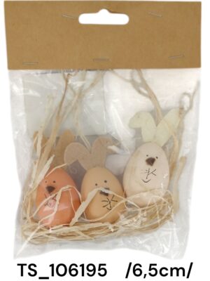 Set încântător de ouă agățătoare, perfecte pentru decorarea spațiului de Paște. Ouăle au dimensiunea de 6 cm și vin în culorile vibrantă: galben, portocaliu și verde, fiecare pictate cu expresii grumpy pentru un plus de umor.