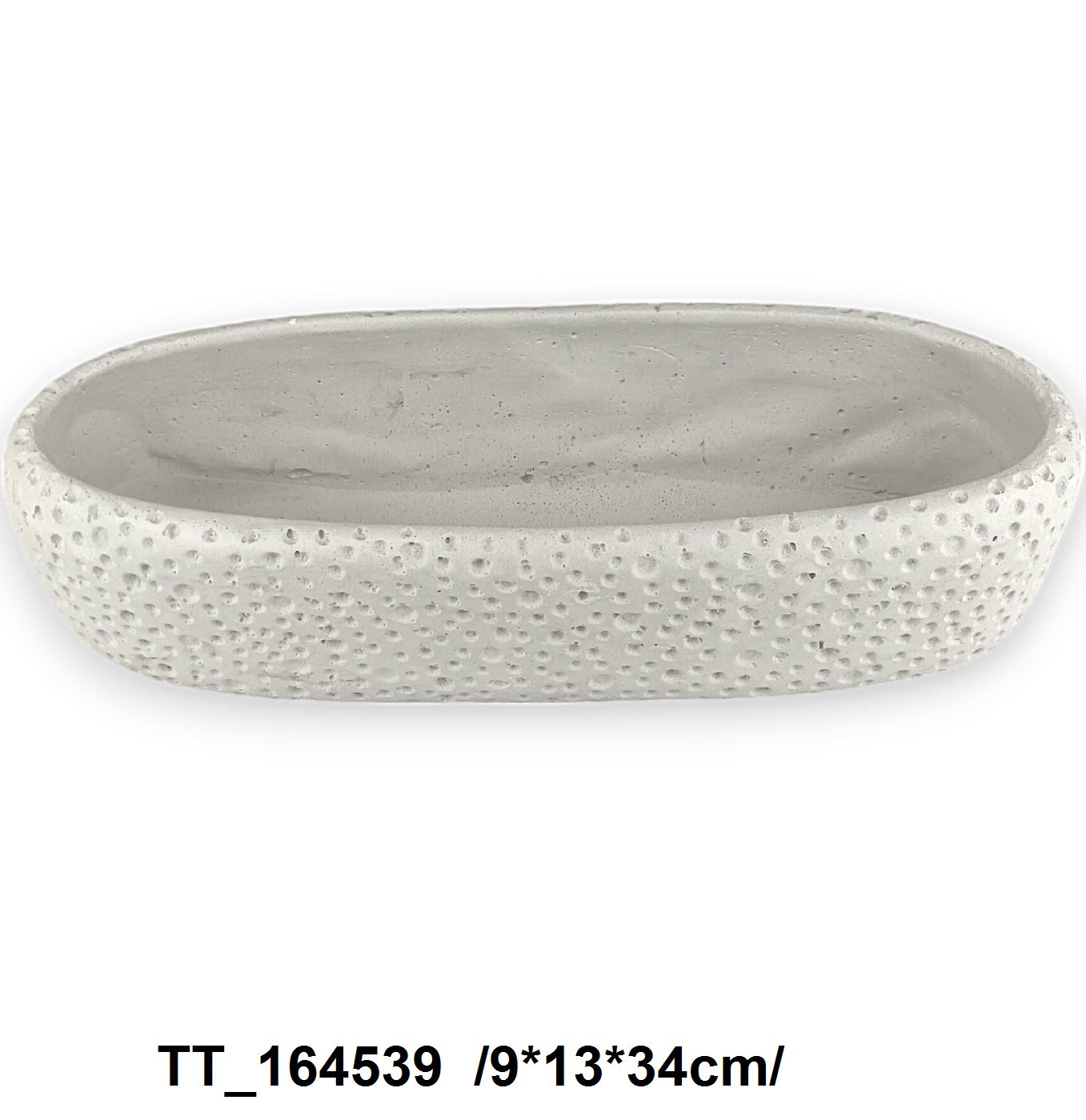 Recipient oval din metal, ideal pentru aranjamente florale sau ca decor de sine stătător. Finisaj texturat cu aspect de perle mici, adăugând un strop de eleganță oricărui spațiu. Dimensiuni generoase pentru diverse plante sau flori.