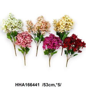 Explorează frumusețea eternă a acestor buchete artificiale de hortensie, disponibile întro gamă variată de culori vibrante, incluzând alb, bej, galben, roz și roșu. Perfecte pentru a adăuga o notă de eleganță și culoare în orice decor floral, fie că este folosit pentru un eveniment special sau pentru a înfrumuseța spațiul casnic. Fiecare tulpină măsoară 53 cm, adăugând volum și textură oricărui aranjament.