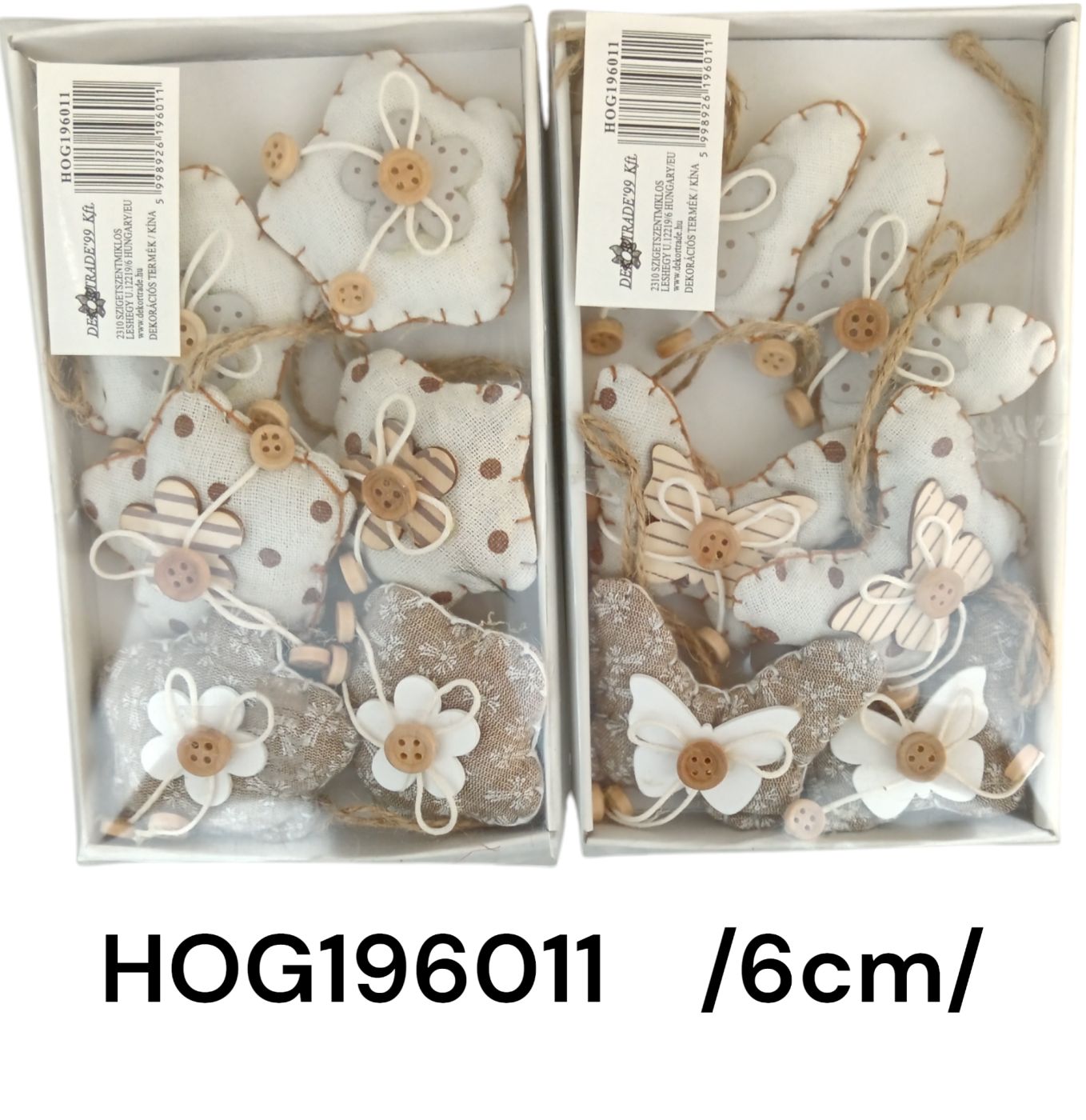 Descoperiți setul nostru unic de fluturași decorativi, ideal pentru a adăuga o notă specială oricărui aranjament floral sau decor. Fiecare fluturaș este meticulos realizat cu un corp din lemn și aripi textile, accentuate de flori textile centrale și detalii subtile de nasturi. Designul lor în nuanțe neutre și naturale contribuie la o versatilitate deosebită, fiind perfect pentru utilizare în diverse teme decorativă.