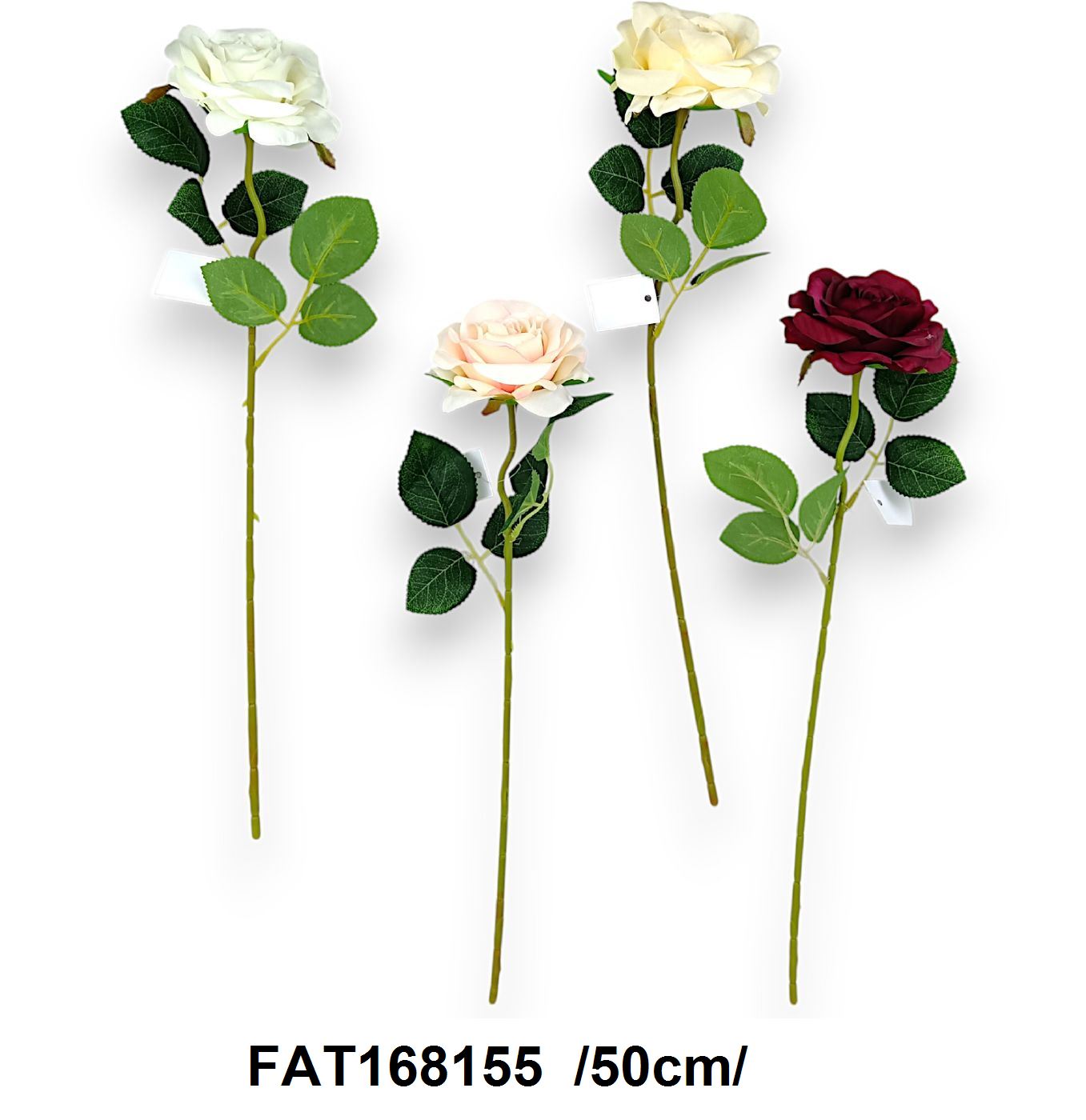 Explorați colecția noastră de trandafiri artificiali înalte de 50 cm, disponibili în nuante de alb, crem și roșu burgund