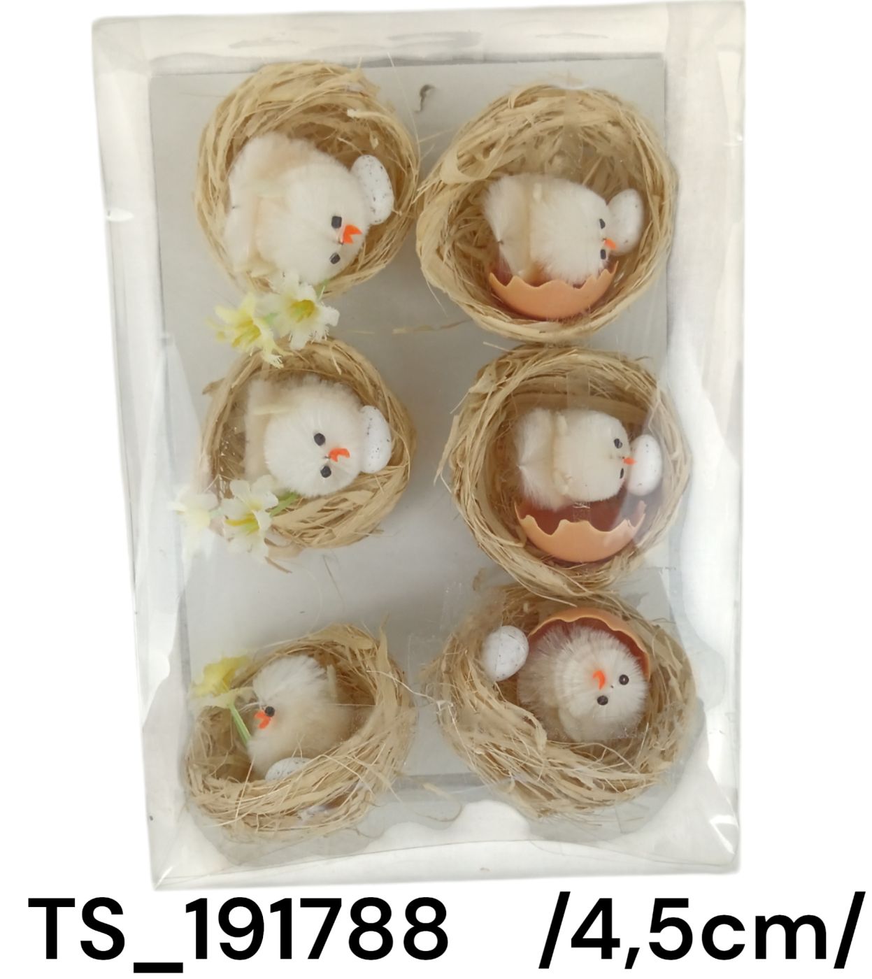 Acest set adorabil conține păsărele plasate în cuiburi de sisal, fiecare având detalii florale și coji de ou. Perfect pentru a adăuga un accent primăvăratic și pascal casei tale.
