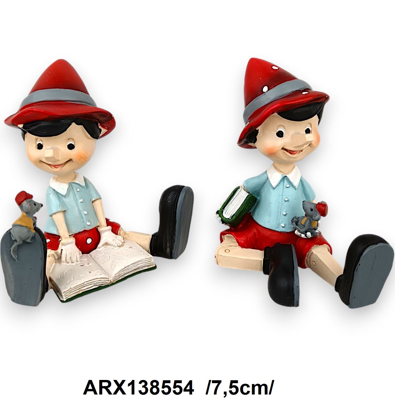 Adăugați o notă veselă oricărui spațiu cu aceste statuete colorate reprezentândul pe Pinocchio. Perfecte pentru decorarea camerei unui copil sau pentru a aduce un zâmbet în orice colț al casei. Personajul iconic este înfățișat în două ipostaze: citind o carte și cu un șoricel drăguț în mână.