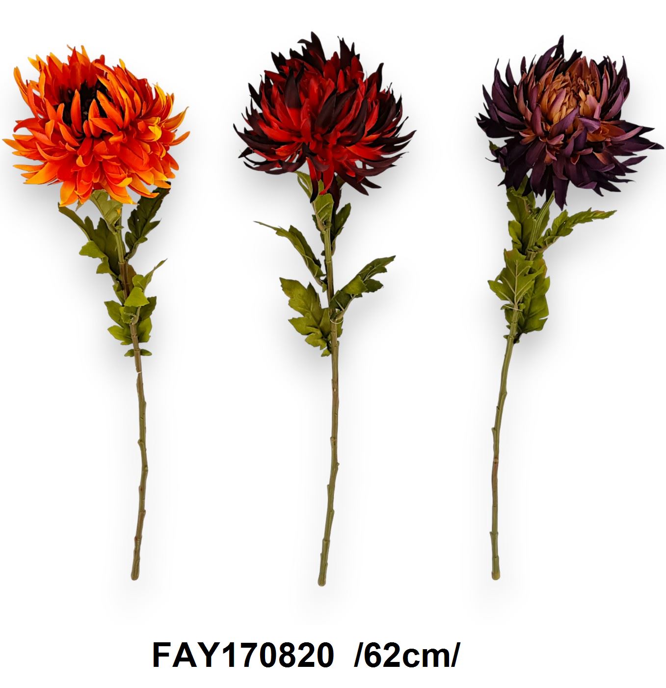 Explorează colecția noastră vibranta cu acest trio de flori artificiale, perfecte pentru a adăuga o pată de culoare oricărui spațiu. Setul include flori stilizate în nuanțe de portocaliu aprins, roșu burgund și purpuriu închis, fiecare măsurând 62 cm în înălțime.