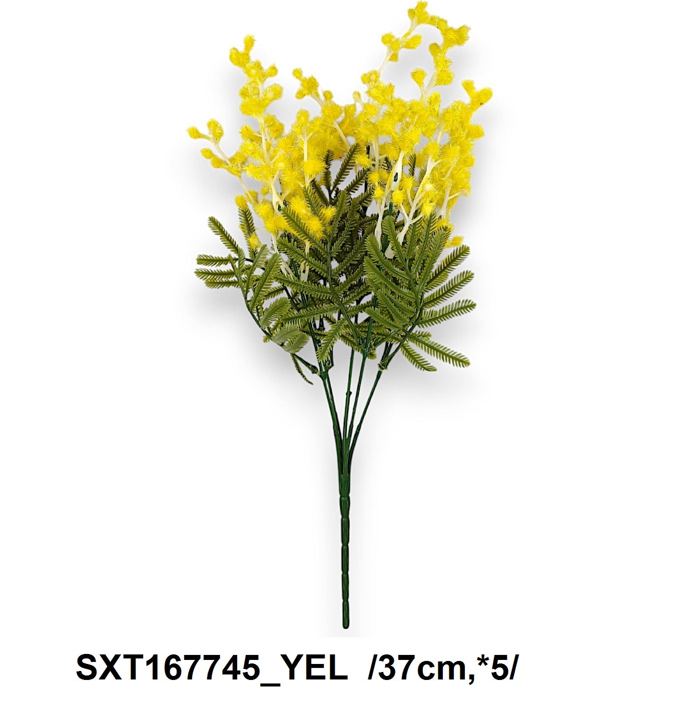 Adăugați un strop de culoare și vivacitate decorului dumneavoastră cu acest tuf de mimosa artificial, perfect detaliat, întro nuanță vibrantă de galben. Cu o înălțime de 37 cm, acesta este ideal pentru a fi folosit atât în aranjamente florale cât și ca decor independent.